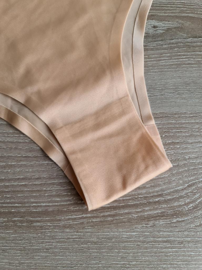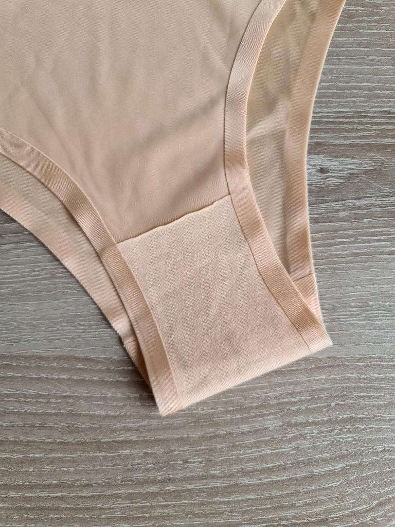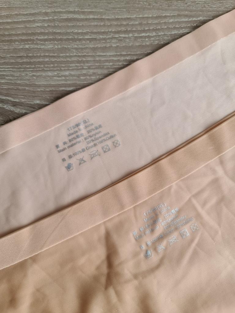Бесшовные трусики Привет ❤️ Приятные тактильно, на теле не чувствуются и, что немаловажно, незаметны под обтягивающей одеждой. Покупала до этого подобные в другом магазине. Ношу постоянно, после многократных строк почти не растянулись и не потеряли цвет. В комплекте 2-е трусиков. Есть разные варианты расцветок. На этот раз я отдала предпочтение сету, состоящему из трусиков телесного и светло-розового цвета. Были упакованы в индивидуальные зип-пакеты. Посадка средняя, комфортная. Основной материал: 80% нейлон, 20 % спандекс. К телу материал приятный, немного прохладный. Возможно, кого-то насторожит, что трусики не из хлопка, но по своему опыту могу сказать, что носятся они отлично (за исключением индивидуальной непереносимости синтетики, конечно). Ластовица, кстати, хлопковая. И она в цвет трусиков. Размерный ряд: от L до 3XL. На свои параметры заказала размер XL. У меня ОТ 64 см, ОБ 94 см. Исполнение аккуратное.