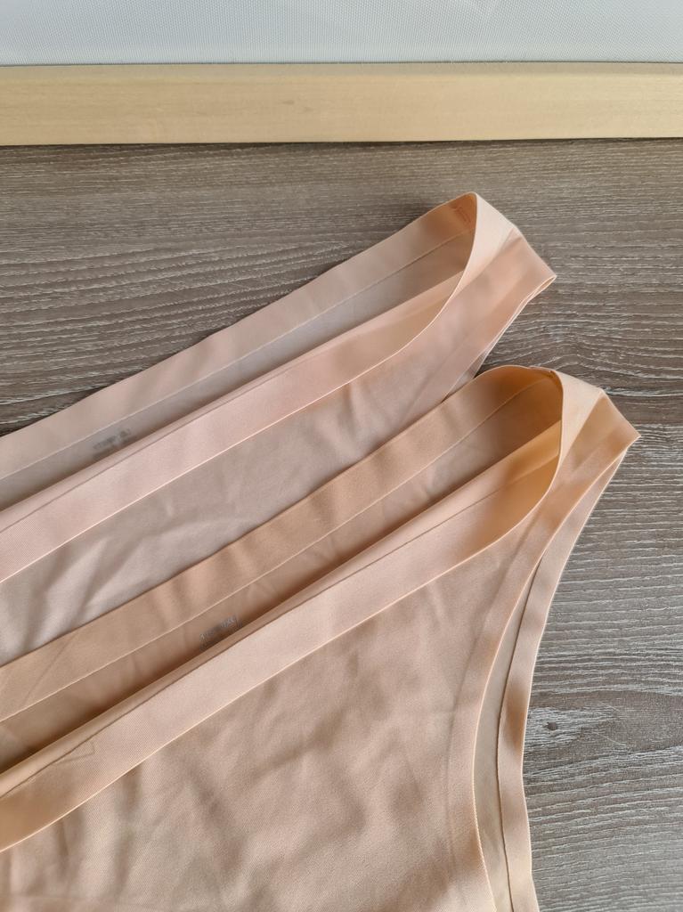 Набор из двух женских бесшовных трусиков 🔞 Беру бесшовное белье снова и снова, ведь оно настолько удобное, что не хочется снимать ни днем, ни ночью, ведь на теле его совсем не чувствуешь! 🤤 Помимо всего, подобные трусы совсем не заметны под одеждой, даже самой облегающей. Особенно хороший вариант для тех, кто не любит классические стринги, как я, ведь для повседневной носки к ним явно нужна привычка.🤭 Комплект состоит из двух трусиков - танга, которые при желании легко превращаются в стринги. Посадка средняя. Сидят комфортно, по фигуре. Никаких швов и наворотов. В зоне Х хлопковая вставка. 😉 Материал - спандекс и нейлон. Ткань мягкая, гладкая, тонкая, эластичная, не светится и не электризуется. 👌 По цветам выбор велик, но я взяла беж и нежно - розовые, под цвет тела. Размеры от М до 3XL. Я выбрала М на свои параметры 87/67/93 см. Подошли прям впритык, без запаса. ☝️ Доставка до Алтайского края месяц живым треком. Этикеток нет, а вот печать - ярлык на каждом изделии. 🏷️ Хорошие трусики! Единственное, размером больше сели бы удобнее и свободнее. Учтите это! 👌