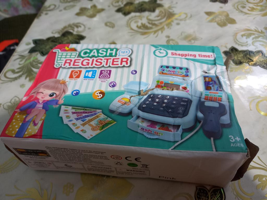 Каробка в которой пришла игрушка вся мятая! Хорошо что товар целый без сколов! Неплохо бы было если бы табло работало и кнопочки были не монолитные а как на калькуляторе нажимались, но к сожалению только сканер пещит и всё и для этого надо две пальчиковых батарейки.