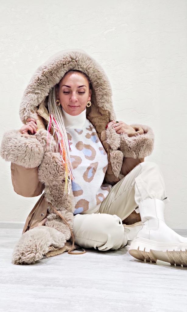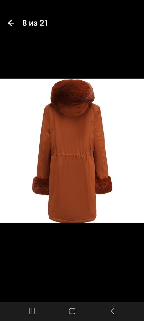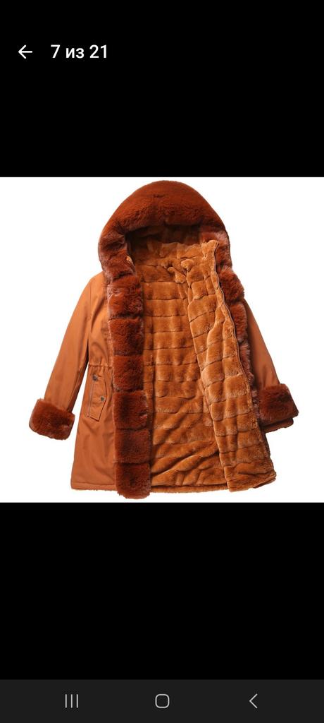Parkas-утеплённая куртка , очень понравилась! Увидела обзор на неё от Валерии Папыриной и решила заказать и не пожалела! Заказала в рыжем цвете! Выглядит очень нарядно, тёплая. Мех внутри по всей куртке! Снаружи мех можно отстегнуть и носить как более лёгкий вариант на Сибирскую весну когда меховая опушка будет уже выглядеть очень по зимнему , но на улице ещё будет прохладно в ней всё же будет тепло так как внутренний мех не отстегивается. На мой рост 177 см и 50 размер я заказала курточку 3 XXXL . Длина у меня примерно на 7 см выше колена, рукава очень длинные даже на мой рост. Можно надеть под неё ещё тёплую кофту так как она мне достаточно свободная . К покупке рекомендую! Спасибо продавцу и JOOM! Так как посылка сборная и состоит из нескольких заказов дата отправления 24.11.22 , а дата доставки 03.01.23 это до Красноярска и заказы в этой сборной посылке от разных продавцов. P.s.: -Дополняю свой отзыв- в 37 не замерзла с тёплой кофтой, но мех холодит так как он искуственный и пришиты полоски меха внутри не в стык друг к другу, а между ними полоска материала , и пихора идёт без синтепонового утеплителя и там где в стыке мех с плооской тканевой ощутимо , что нет утеплителя. До t- 25 С идеальный вариант! И внешне выглядит симпатично! Сейчас по промокоду OUTLET скидка 40% на пихору! За 4900 рублей прекрасный вариант!