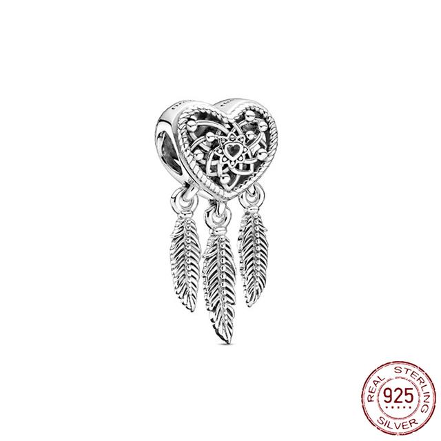 POMOiii Новый стерлингового серебра 925 пробы сердце и мама мотаться Ловец снов Шарм подходит оригинальный модный браслет DIY ювелирные изделия для женщин