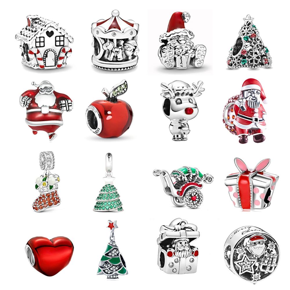POMOiii Блестящая Рождественская елка с изображением оленей, снеговика, милого дома, очаровательная бусина, подходит для оригинального модного браслета, серебро 925, ювелирные изделия своими руками, женский подарок
