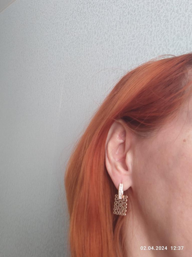 Пришла сборная посылка, доставка месяц. Пришли серёжки, очень симпатичные, похожи на золотые. Аккуратные, лёгкие, не громоздкие. Упакованы хорошо. Очень красивый дизайн. Смотрятся восхитительно! Заказала ещё к ним кольцо с таким же дизайном,ажурное. Очень красивый комплект получится. Спасибо продавцу,рекомендую