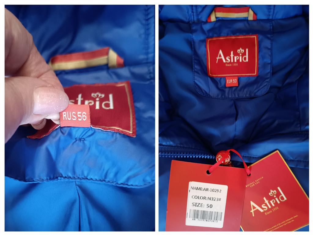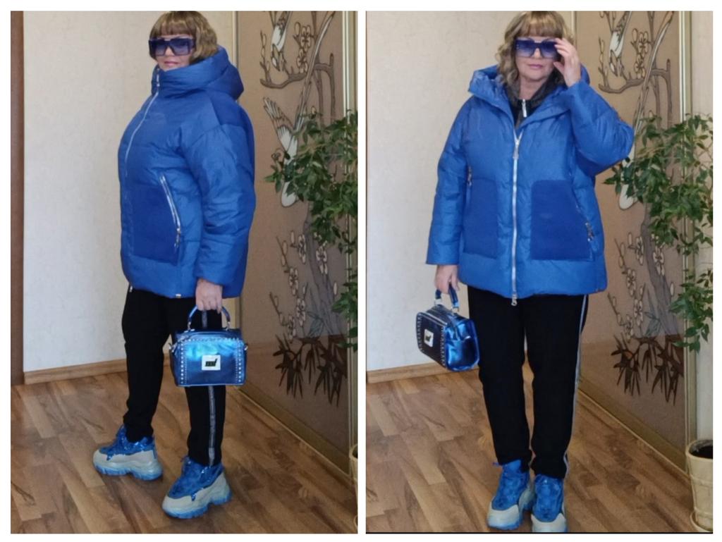 Видео в конце на даме с параметрами размера 50. Рост 160 Ог 108, от 88, об 110. А мне выслали не тот размер и она не застегивается!!! Куртка заявлена как зимняя, но это не так!!! Она на зиму в конце февраля, такая межсезонная, когда в зимней куртке уже жарко, а в демисезонной ещё холодно. Ну или на октябрь в Питере. Пуха там я не заметила, возможно внутри синтепон . Сзади слой неопрена снаружи, внутри синтепон. Кстати, об этом слое неопрена. Я глядя на фото , думала, что это имитация дублёнки, а получив куртку, сильно удивилась, что делает этот материал в зимней куртке....?? Но цвет и лёгкость перетянули эту куртку в сторону плюсов Сама куртка отличного качества, цвет такой яркий, синий глянцевый!!! Два наружных кармана и один боковой внутренний. Петелька и маркировка имеются. Но!!! Судя по размерам, мне выслали хл. 46+6, 52 размер, потому и тесен!!! Мой то размер 56-58. Параметры куртки: ОГ 128 см, ОБ 125 см (наружные размеры) Длина 75. Мои параметры рост 166 ОГ 120, ОБ 123 см Хочу отметить, что при кажущихся подходящих размерах куртки, мне она мала!!! Тесна в груди, т к у нее спущенное плечо и стиль оверсайз. Куртка пошита качественно, Фабрика Астрид в косяках пошива не замечена. Продавцы портят имидж фабрики, высылая вещи ошибочно!! Пришла очень быстро, за 28 дней Куртка настолько хороша, что есть желание заказать ее в размере 4хл. Служба поддержки клиентов вернула 50 процентов стоимости заказа. Спасибо им за участие. Найдена новая хозяйка моей подборке. Опять сестре повезло с дармовщинкой. Правда ей куртка великовата на ее 50 размер. И кроссовки также ей поддавливают. Заказала на 2 размера больше. Жду со страхом....