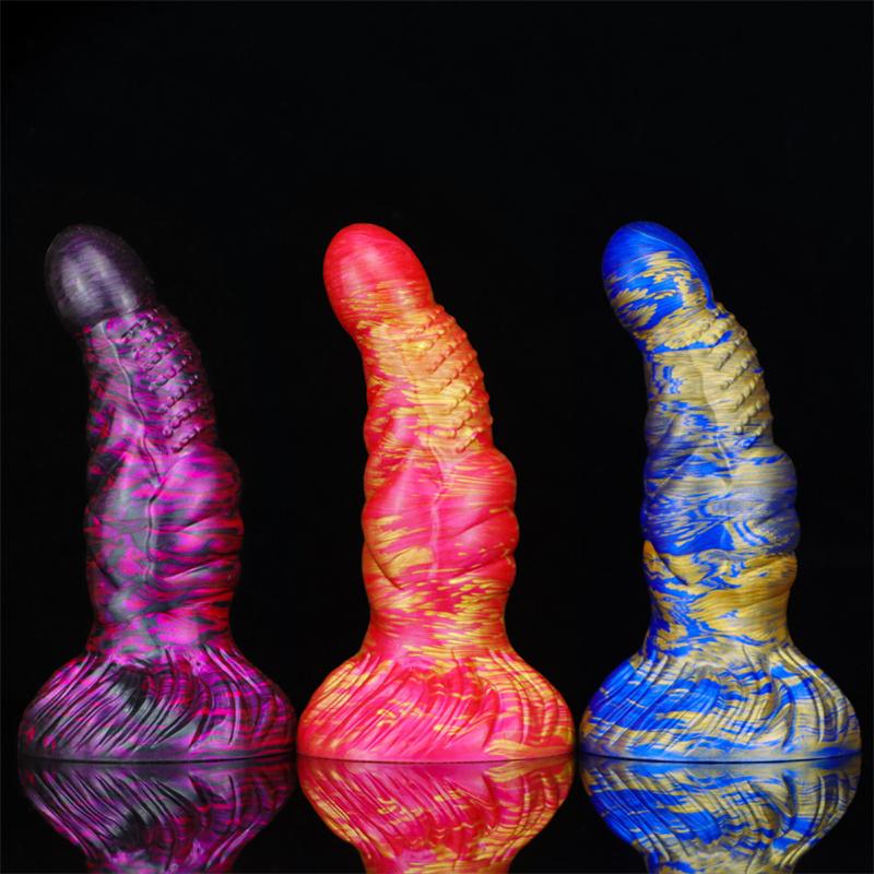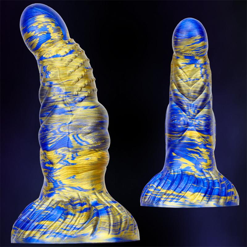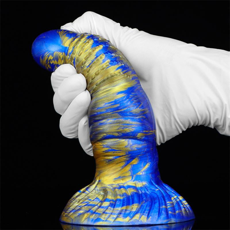 Переливающийся Золотой Молоток Смешанный Цвет Жидкий Силикон Пенис Женские Товары Искусственный Пенис Увеличенный Анальный Плаг Товары для Взрослых