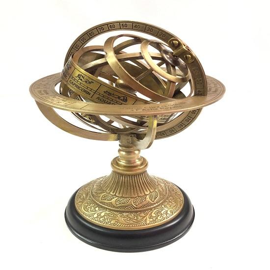 Созданная с высокой точностью и тщательностью, Армиллярная сфера может похвастаться потрясающим дизайном из блестящей латуни, на котором изображены замысловатые небесные кольца, выгравированные с мельчайшими деталями.. Это функциональное произведение искусства представляет небесные взаимоотношения планет, а его богатое историческое значение придает изысканность любому пространству.