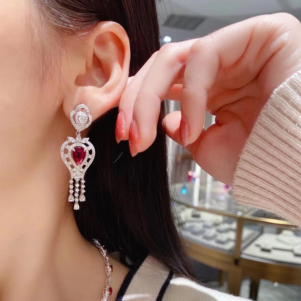 Висячие серьги с королевской короной и рубинами и бриллиантами, стерлинговое серебро 925 пробы, свадебные серьги-капли для женщин, обещание, ювелирные изделия для помолвки и вечеринки