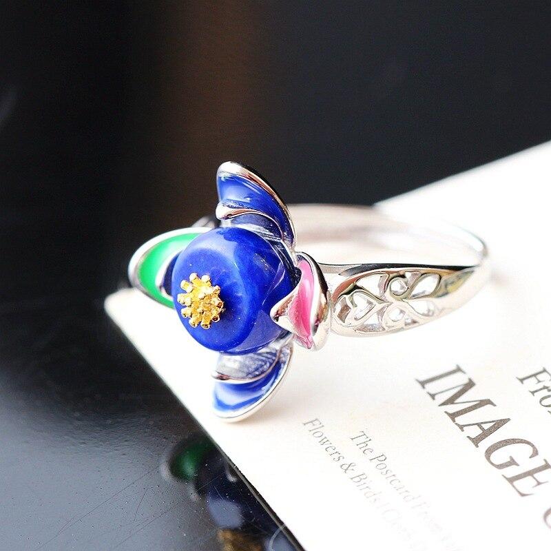 Серебро 925 пробы с открывающимся кольцом из натурального лазурита Серебро Cloisonne, восстанавливающее древние способы, которыми женщины бросали курить