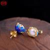 S925 Модные классические серьги-гвоздики с перегородчатой жемчужиной и синим жемчугом