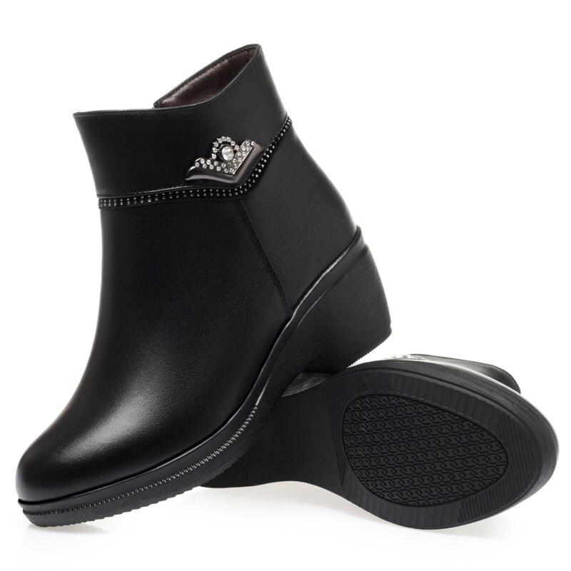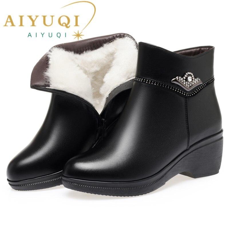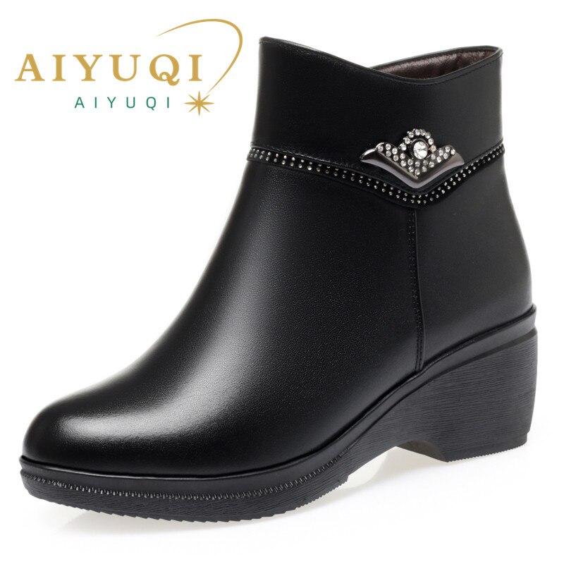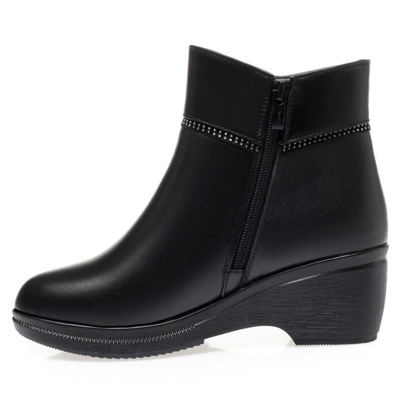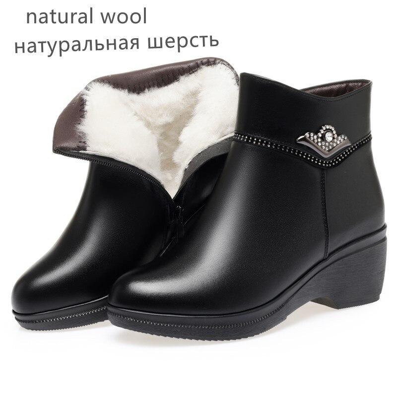 Женские зимние ботинки, обувь для мам, женские ботильоны из натуральной кожи на танкетке, повседневные зимние сапоги большого размера на высоком каблуке, женские зимние ботинки