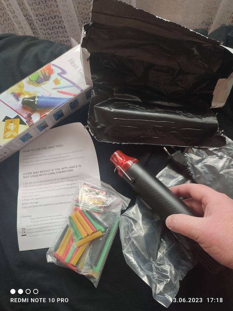 Отличный термо нагреватель. Для термо усадочных материалов, то что надо. Не маленький, но и не большой, аккуратненький. Ради прикола, подогревал, бокал с чаем. Не рекомендую греть более 3х минут. Перевёл инструкцию где написано время работы. Упаковано хорошо. Спасибо продавцу и службе доставки.