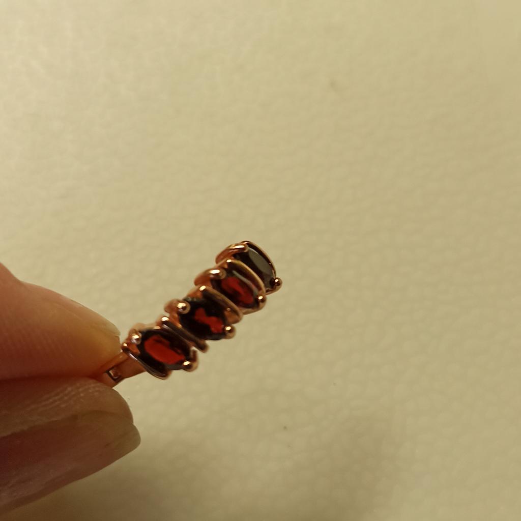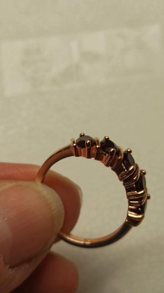 Цвет металла так себе. Камешки красивые, форма и цвет соответствует заявленным. Серьги на ухе сидят очень хорошо, застежка в порядке. Колечко скорее 8, чем 9. Жаль что не было 10, обычно её беру. После ношения дополню.