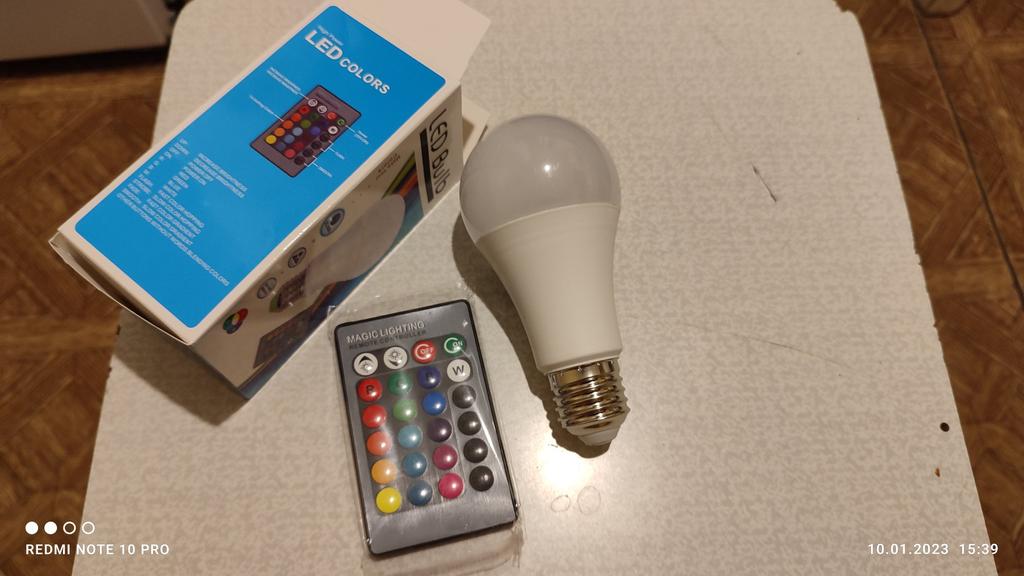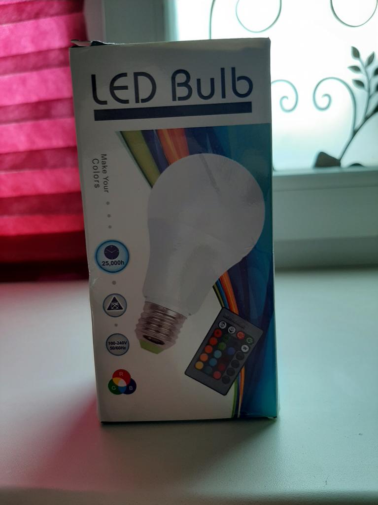 Посылка пришла не повреждённая внутри коробка с лампочкой обёрнута в несколько слоёв пупырки. В комплекте лампа, пульт ик без элемента питания. На пульт реагирует нормально желательно направлять на лампу светится разными цветами есть несколько режимов. Может светить стабильно может моргать. Выиграл за 1 рубль. Для ночника пойдёт. Спасибо Джуму и продавцу.👍