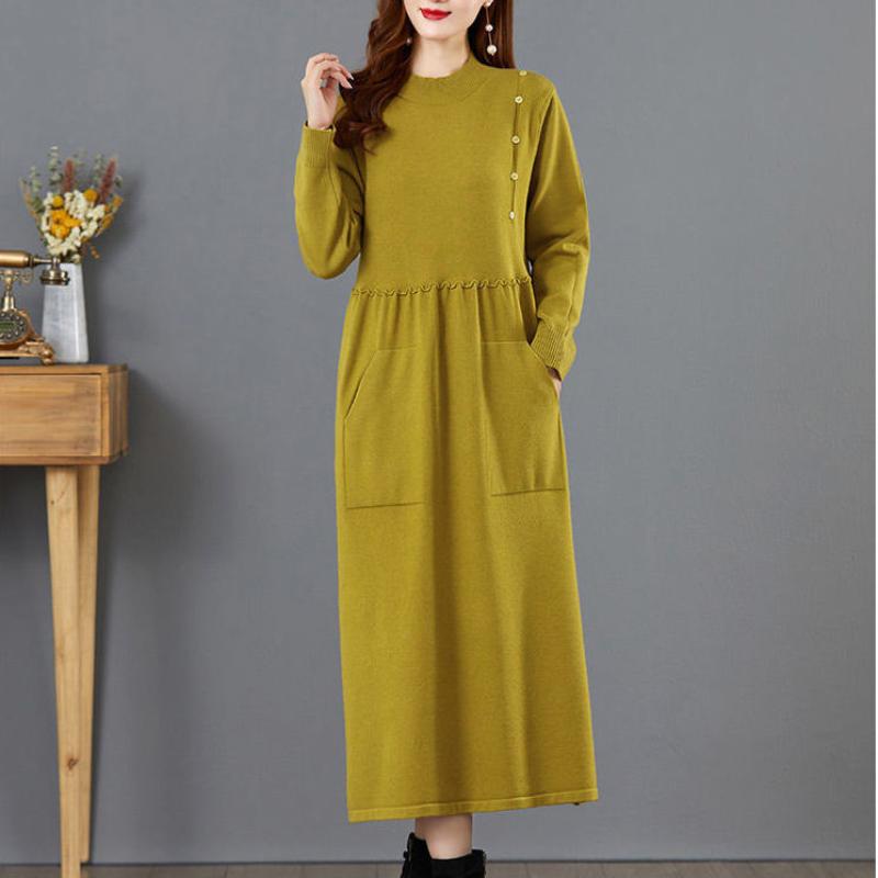 Осенне-зимняя вязаная женская длинная юбка до колена с пальто под и внешним карманом и пуловером с круглым вырезом — купить товар онлайн с бесплатной доставкой по всему миру!