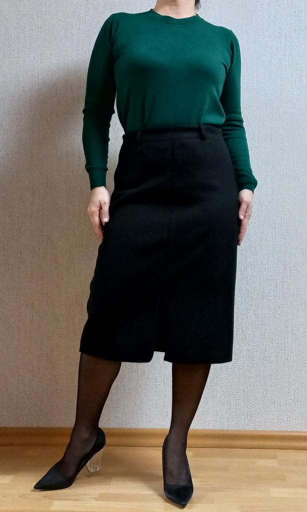 Юбка классная, на мой параметры Т-80, Б-103, чуть великовата но это не критично ,с тёплыми колготками и водолазкой норм. Качество хорошее, пошито аккуратно , нитки не торчат. На мой рост 160см длина на лодонь ниже колена. Выглядит достойно, ткань похожа на шерстяной трикотаж.