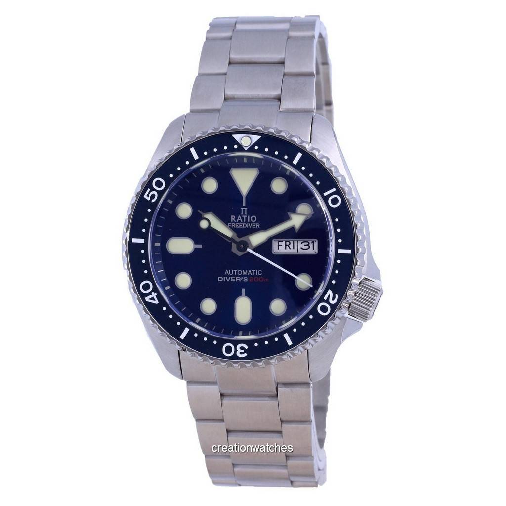 Ratio FreeDiver Blue Dial Sapphire Crystal Stainless Steel Automatic RTA102 200M Мужские часы — купить товар онлайн с бесплатной доставкой до всему миру!