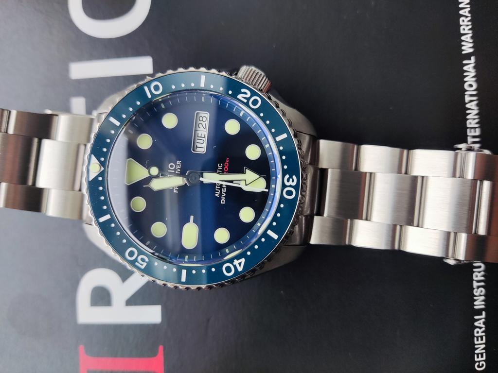 Качество порадовало! Даже при пристальном внимании к мелочам особо и придраться не к чему. Антиблик работает. Красивый фиолетовый рефлекс у сапфира. Синий цвет очень красивый, глубокий. Люминат очень хороший. Бейзель четкий, если придраться, может быть чуток люфтит по ходу прокрута. На слух очень тихий механизм. Полировка, даже мелких деталей на уровне. Сатинирование приятное. Разве что может быть не совсем ровные площадки крепления браслета к корпусу и немного не внятные переключения даты и числа. По комплектности, видимо продавец забыл положить силиконовый ремешок) Но то такое) Теперь интересное. Сравнили с SKX.... Если честно, мне эти часы понравились больше, чем сейко. У меня всё) Доставка ровно 1 месяц. Да, еще одно, к производителю-почему бы не сделать инструкцию в размер коробки, чтобы ее было удобно проложить под картонку, и почему гарантийная карта не пластиковая?!)