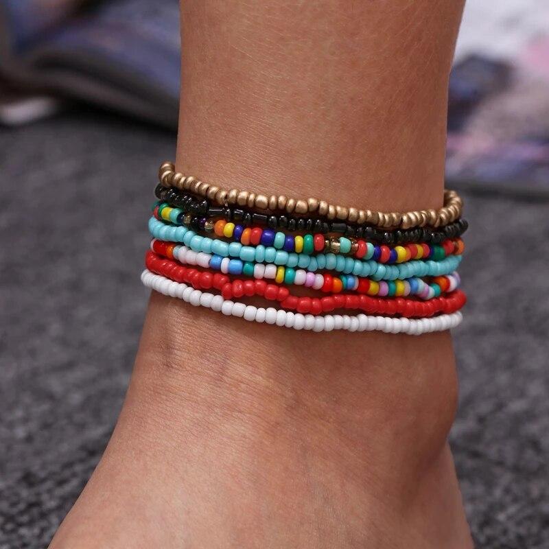Богемные красочные браслеты из бисера для женщин, летние океанские пляжные браслеты ручной работы на щиколотке, пляжные украшения для ног