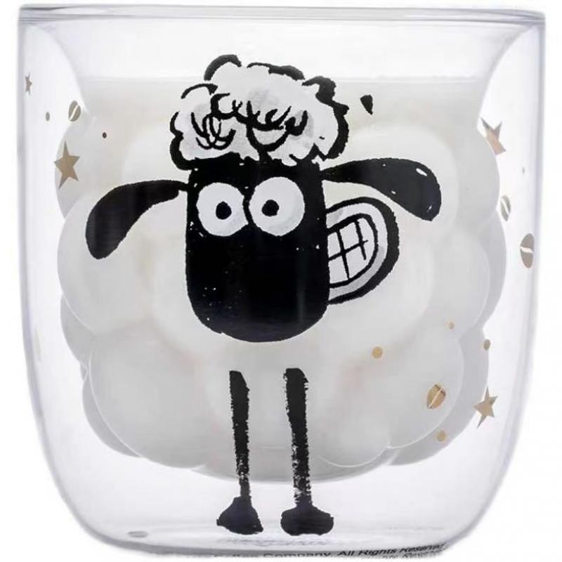 Милая мультяшная овца, двойное стекло, 300 мл, чашка для холодных напитков, кофейная кружка, милая чашка для молочного сока, лучший подарок для фестиваля