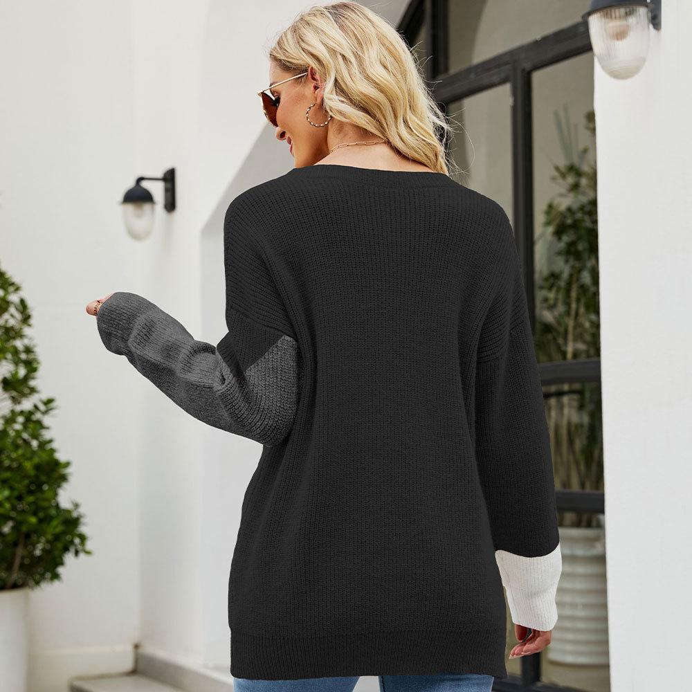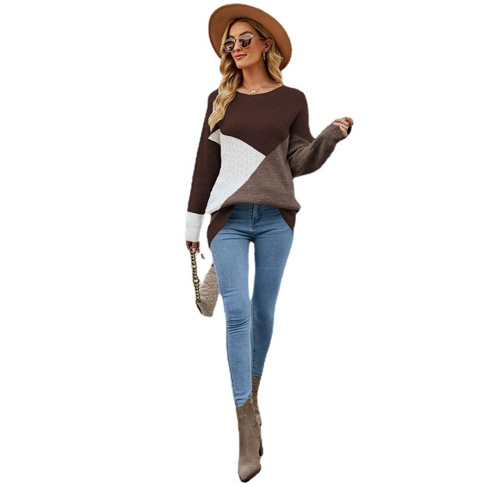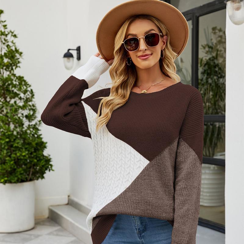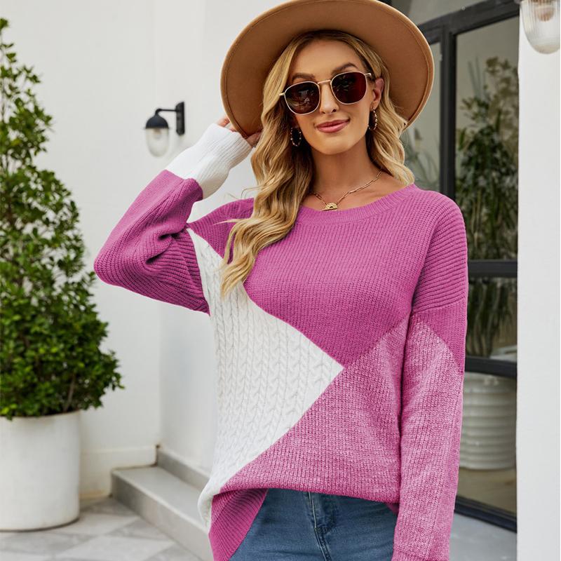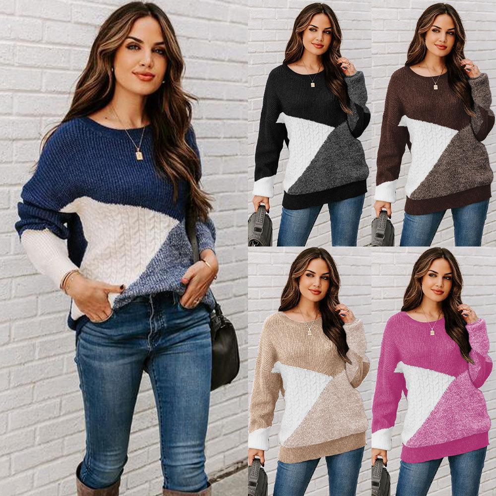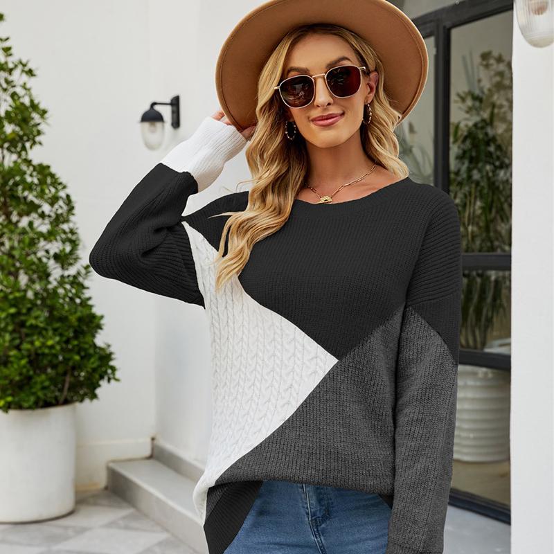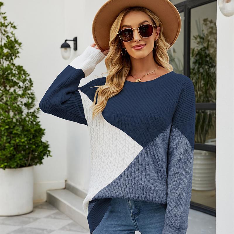 Зимний новый индивидуальный красочный женский вязаный свитер, женский свободный свитер с круглым вырезом, большой размер, женский