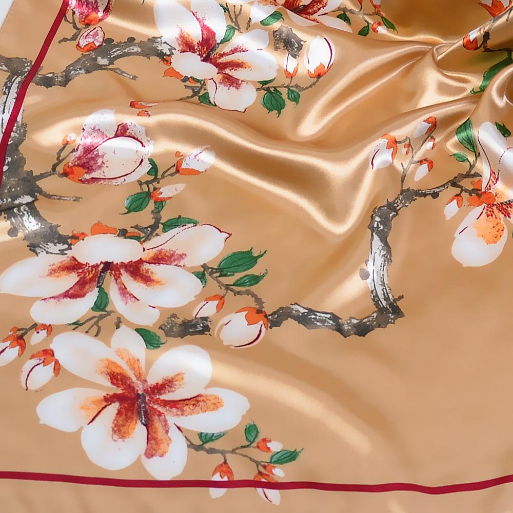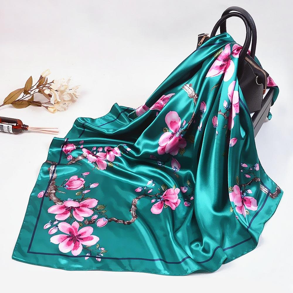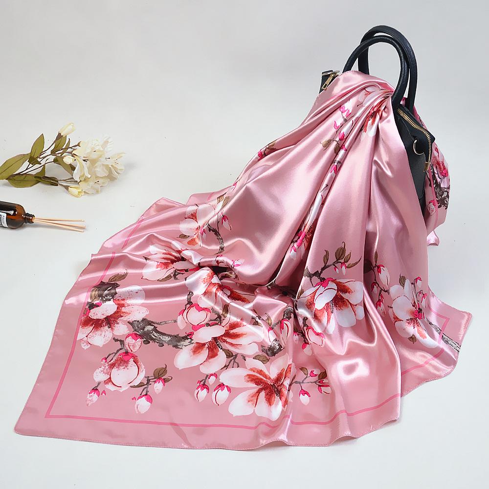 Модный женский шейный платок, платки и накидки с цветочным принтом, шелковые атласные хиджабы, шарфы для женщин, 90 см