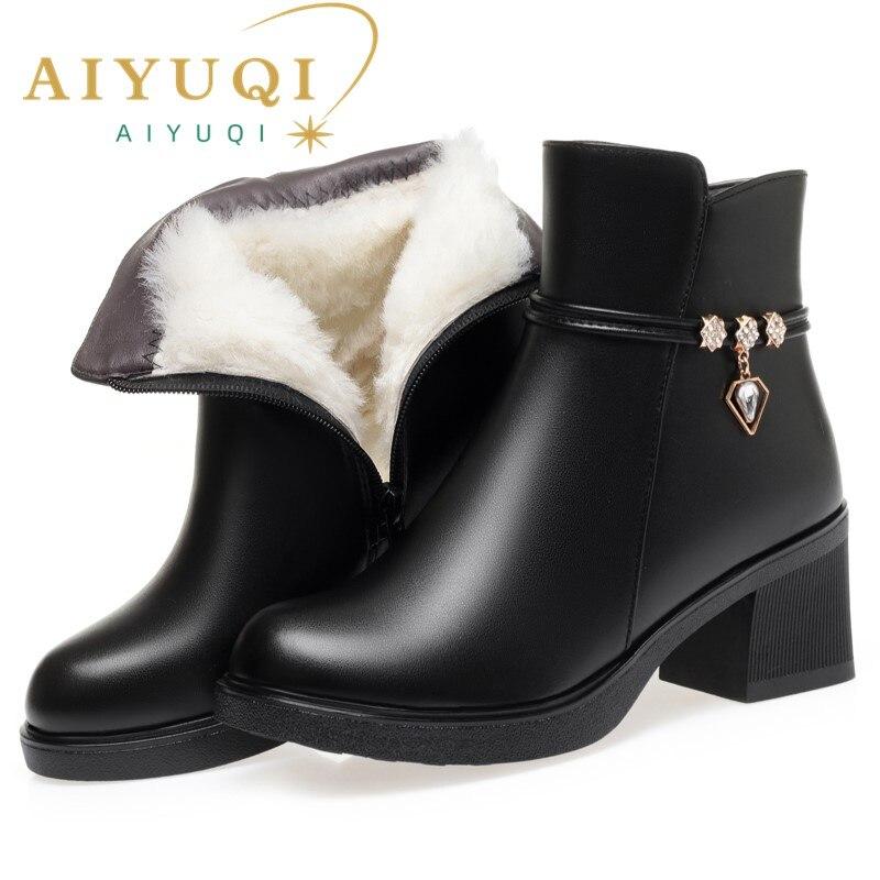 Женские ботинки, модные женские зимние ботинки большого размера из натуральной шерсти, повседневные женские короткие сапоги на среднем каблуке — купить товар онлайн с бесплатной доставкой по всему миру!