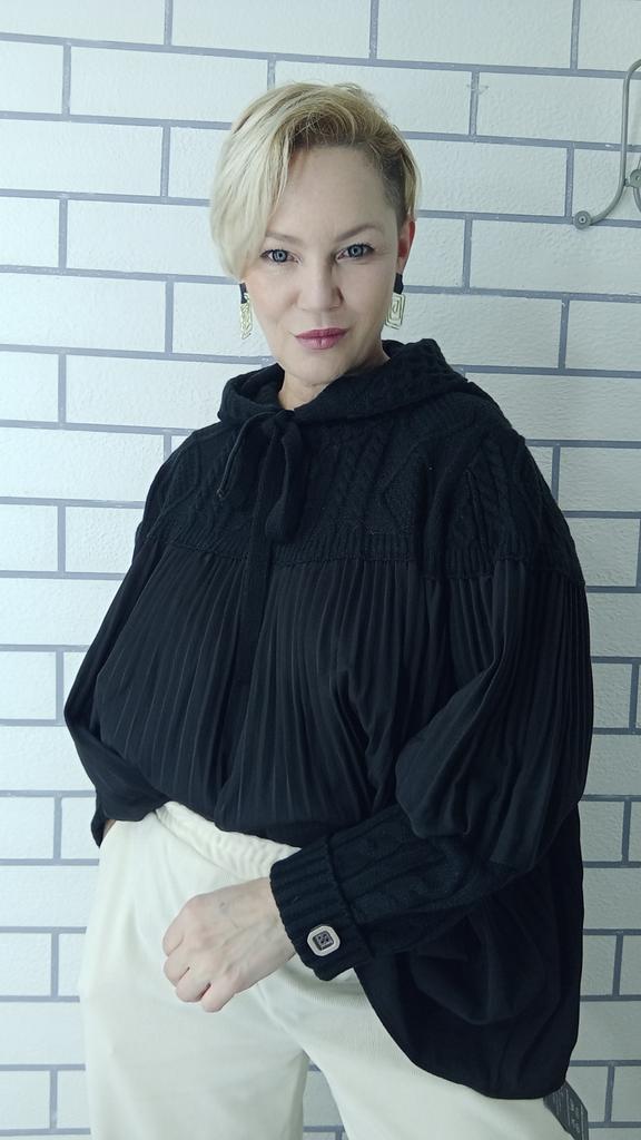 Интересный свитер от Dimanaf. ✅ Доставка вовремя ✅ Упаковка - обычный почтовый пакет ✅ Как и все вещи этого бренда, пошит очень качественно ✅ Необычное сочетание вязки и ткани, похожей на атлас, мне именно это и понравилось 🥰 ✅ Сидит на мне ( 118-95-125) не фонтан, хотелось бы длиннее, плюс на 2 см короче заявленного. Рукав пошит так, что придает обьема, девочки с моей комплекцией, обратите внимание. Лучше подойдет тем, у кого узкие плечи. Плечо 42 см, вместо заявленных 53 см. Тоже обратите внимание, за это сняла-бы звезду. Еще один момент. Вязка довольно обьемная и теплая, а ткань тонкая. Выглядит красиво, но за счет тонкой ткани и расклешенного фасона вверху это получается теплый свитер, а начиная от груди-разлетайка, которая зимой точно не согреет… Значит нужно будет обязательно поддевать под эту вещь гольф или майку. Я не люблю многослойность в одежде и для меня это минус… Ну вот, как-то так. Как есть. Продавцу и Джуму спасибо. Всем удачных покупок!🌺