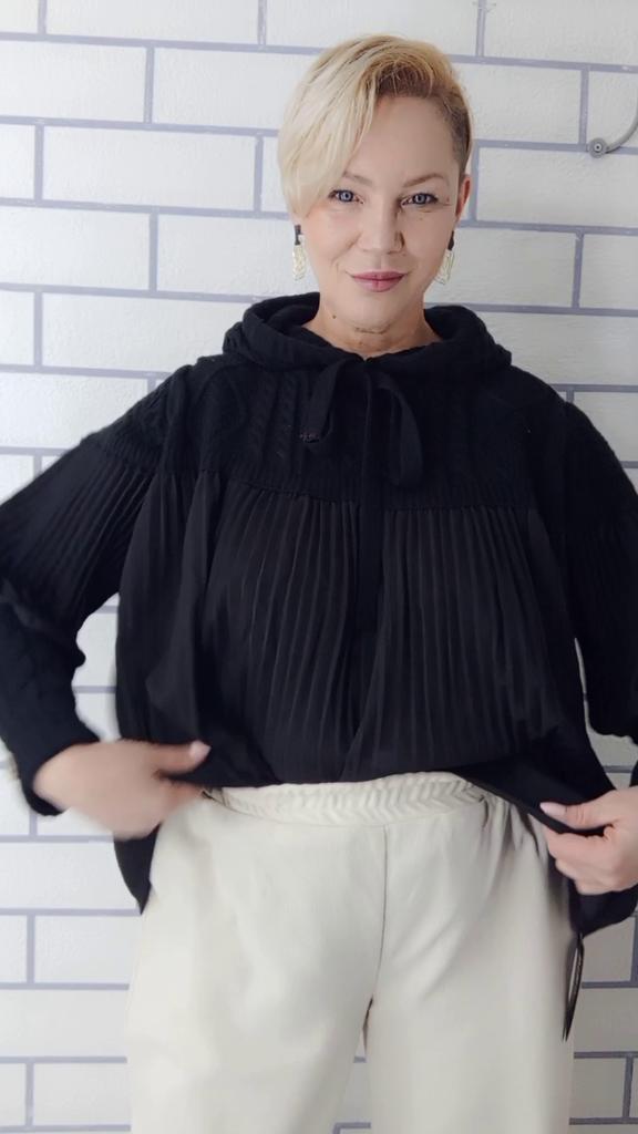 👩🧥👌ОРИГИНАЛЬНЫЙ СВИТШОТ ИЗ КОМБИНИРОВАННЫХ ТКАНЕЙ 👩🧥👌 👉Жми на СЛАЙД ШОУ! Очень стильная и интересная вещь, представленная известным брендом DIMANAF! Я бы даже сказала, что модель уникальная и эксклюзивная. Вещь меня несомненно покорила и сразила наповал, когда я увидела ее в обзоре у Натальи Великой. Свитшот представляет собой разлетайку, у которой присутствует комбинация плиссированной ткани с вязаными вставками спереди и сзади. К тому же ещё есть глубокий вязаный капюшон на завязках и очень красивые, весьма оригинальные рукава-фонарики на вязаных манжетах с декором в виде пуговиц. Сами рукава выполнены из плиссированной ткани. Свитшот свободного расклешенного силуэта, представлен в едином размере, который подойдёт на любые параметры. На меня свитшот сел свободно. Мой рост составляет 170 см, обхват груди 110 см, обхват бедер 118 см. Такая модель отлично скрывает все недостатки фигуры. Поэтому рекомендую присмотреться к этому свитшоту. Хочу отметить и безупречное качество изготовления. Бренд DIMANAF держит свою марку и радует эффектными моделями, которые не заметить просто невозможно. Данный свитшот ещё раз это подтверждает. Вещь невероятно комфортная, весьма оригинальная и очень модная и стильная. От меня пять звёзд производителю. Браво! ЗАМЕРЫ СВИТШОТА: Длина около 70 см Обхват груди рассчитан до 170 см Длина рукава 59 см Плечи 49 см 🎼🎵🎶В слайд шоу использована композиция "Primetime - Sexcrime" в исполнении Earphones.