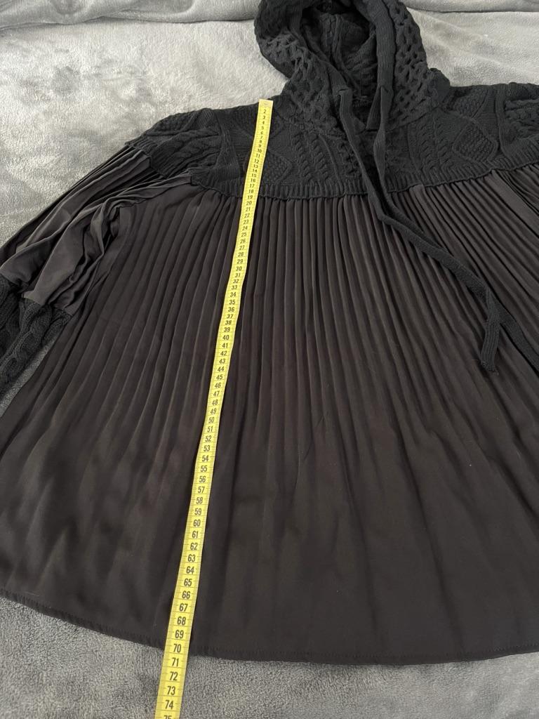Свитшот Больше обзоров, промокоды и специальные предложения в моем телеграм канале https://t.me/natalja_velikaja Меня можно найти в поисковике по имени Наталья Великая, или через браузер. Если не можете найти, пишите ВК, ссылка в шапке профиля. Представлен у продавца в двух цветах, есть ещё коричневый. Размер единый. Мой рост 165, параметры 98-85-105. Силуэт свободный, расклешенный, подойдёт практически на любые параметры. Капюшон на завязках Рукава фонарики, в манжетами и пуговицами. В описании ткань заявлена как акрил. На этикетке указан хлопок и район. Я не слишком разбираюсь в тканях, но по моим ощущениям: Вязаный верх из смесовой ткани ( хлопок и акрил) Плиссированный низ из хлопка ( ткань плотная, напоминает лёгкую костюмную). В любом случае, к телу ткань приятная, не колючая. Замеры ОГ (примерно) 170 Плечи 49 Длина рукава 59 Длина 69 Пошив аккуратный. Вещь интересная, стильная, комфортная. Мне нравится.