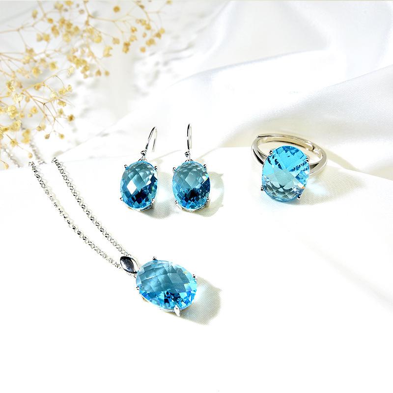 S925 Серебро Инкрустация Драгоценными Камнями Темперамент Простой Женский Комплект Ювелирных Изделий Цвет Серьги С Кристаллами Кольцо Ожерелье Ювелирные Изделия