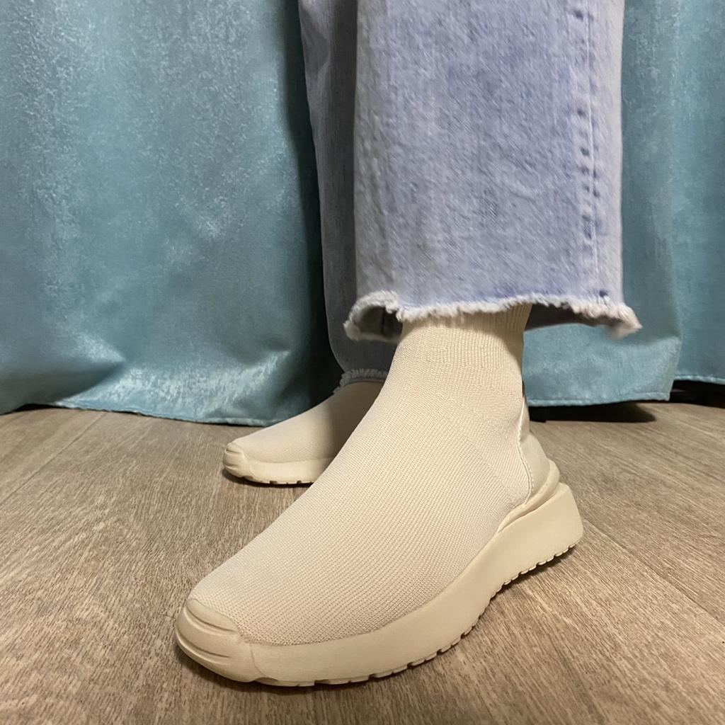 Стильные кроссовки-носки от TUINANLE ✨ У продавца есть три оттенка на выбор: бежевый, чёрный и оранжевый. Я выбрала бежевый цвет, так как он интереснее чёрного, и всё равно также легко сочетается с другими цветами, и при том он не настолько сложный, как оранжевый. 💕 Верхним материалом заявлен хлопок, по ощущениям действительно плотный хлопчатобумажный трикотаж. Пятка сделана из искусственной кожи, что делает задник крепким и более комфортным в носке. 💕 Пришли в пупырчатой плёнке, внутри обуви были пластиковые вставки, которые помогли сохранить форму. Но было бы совсем идеально, если бы они сделали такие же вставки в пятку, потому что задник был помят (форма вернулась, но небольшие замятыши всё равно остались). 💕 На фото продавца бежевый цвет кажется почти белым, по факту он больше уходит в молочный. Сам по себе цвет приятный, но просто отличие надо иметь ввиду 😉 💕 Очень мягкие и удобные, ноге в них супер комфортно. И не жарко) 💕 На свою стопу 23.5 см взяла 38 размер - и он идеально подошел! Отлично для прогулок, но не очень красиво выглядят с длинными джинсами, например. Лучше носить либо с короткими вещами - по типу спортивного вида платьев, леггинс и тд. А так рекомендую! Выглядят стильно, выполнены качественно!