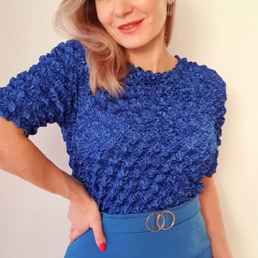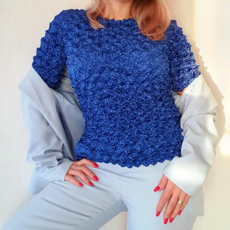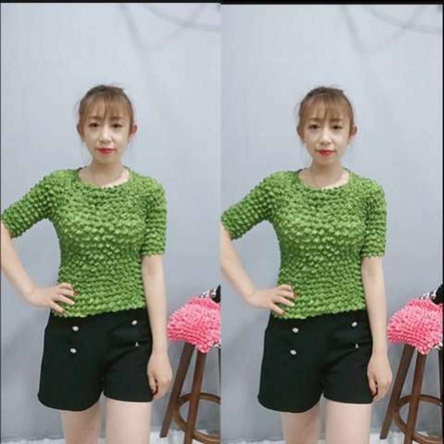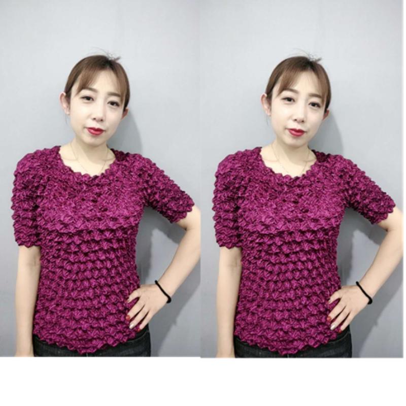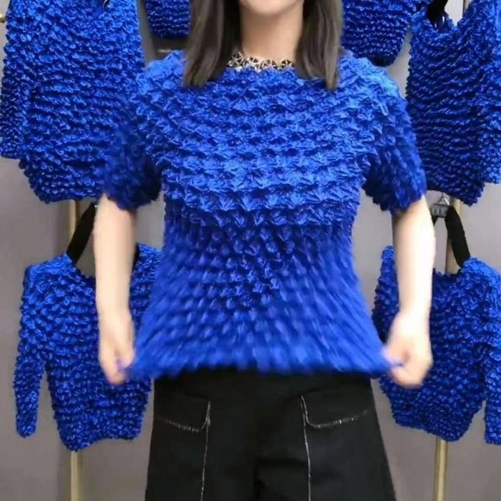 Плиссированная рубашка с мятой пузырчатой принтом в виде ананаса. Универсальный волшебный костюм с короткими рукавами. Однотонное прозрачное свободное трехмерное женское платье.
