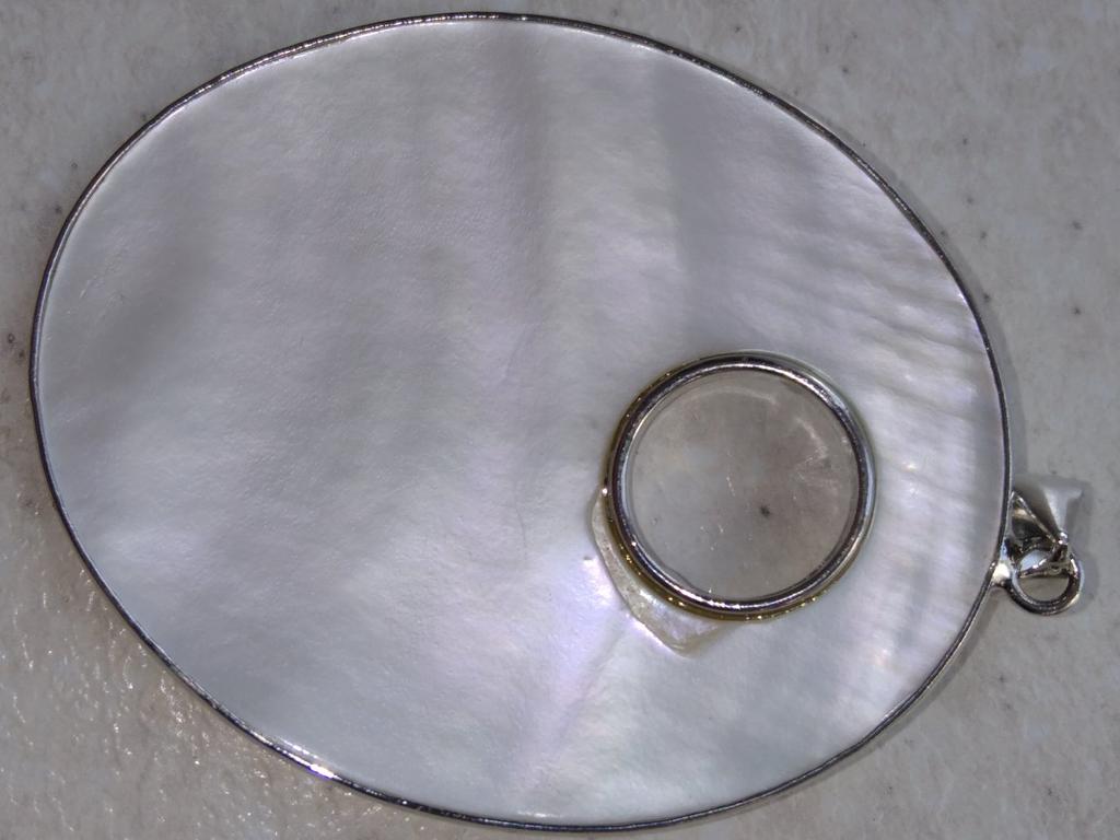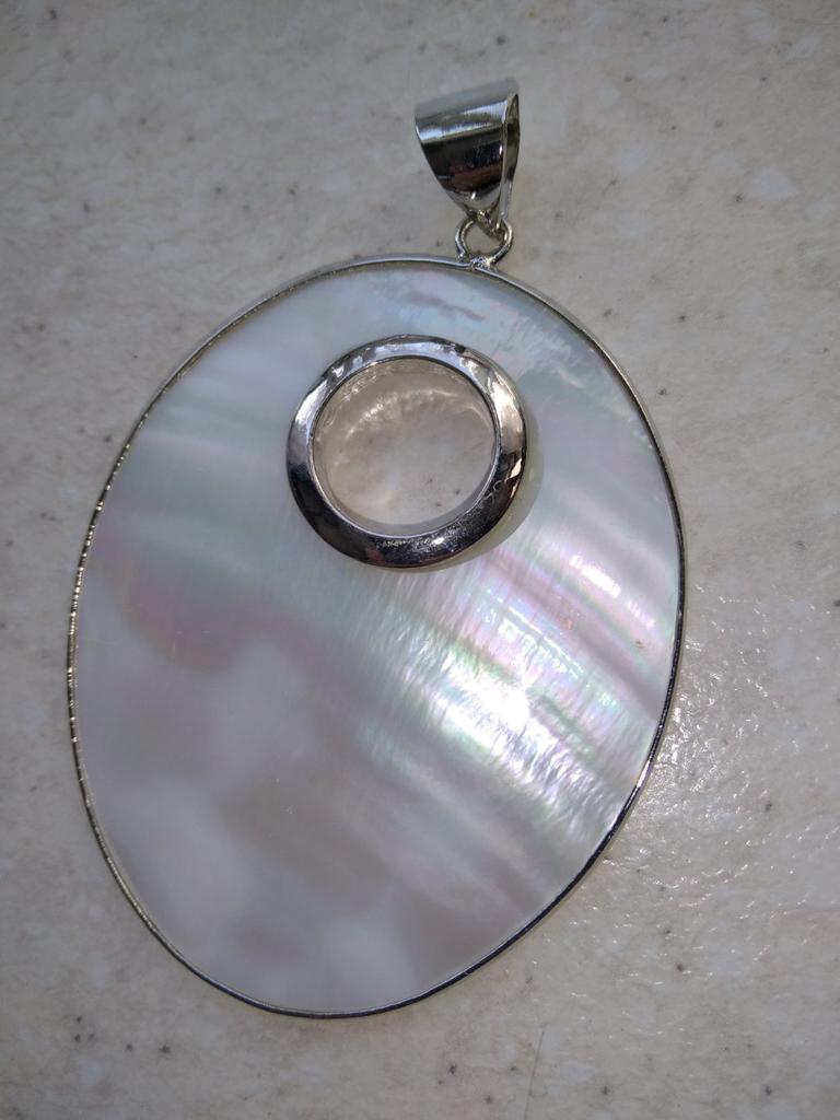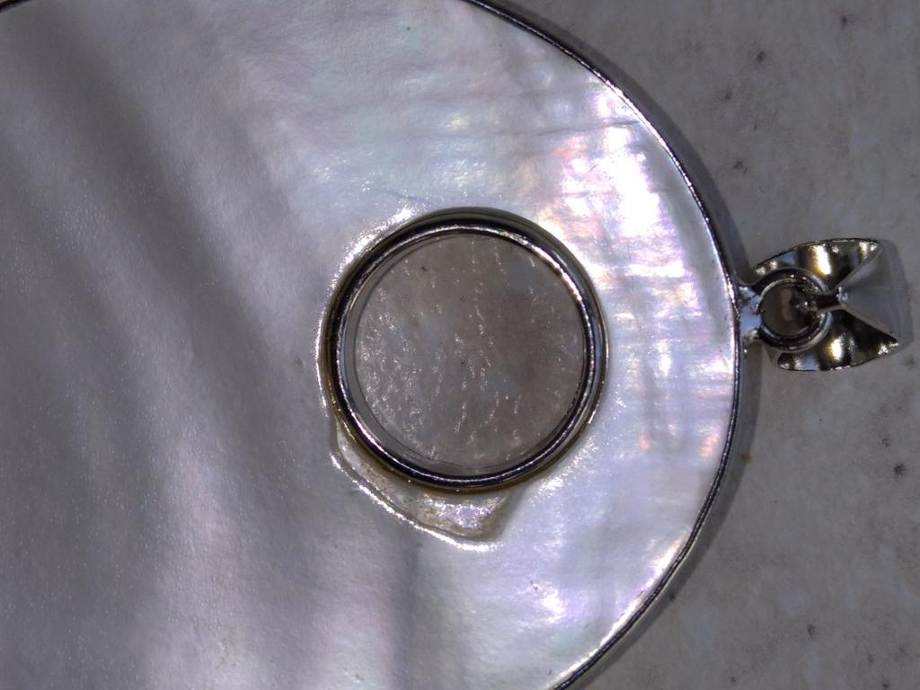 Медальон в виде цветка розы, выполнен из перламутра раковины, светло - серого цвета с зеленоватым отливом. Очень красивый, понравился, я так рада, что его заказала. Шикарный за такую цену. К заказу рекомендую.
