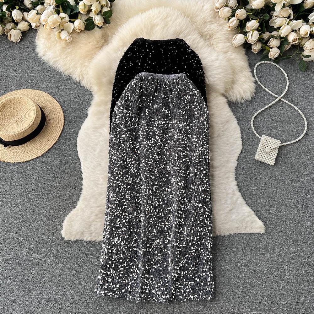 Высококачественная нишевая юбка с высокой талией и блестками, женская осенняя сумка средней длины во французском стиле ретро, платье на бедрах