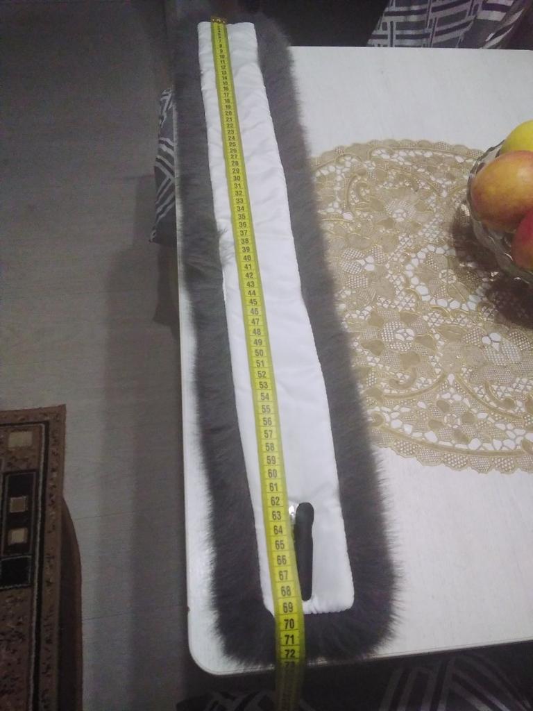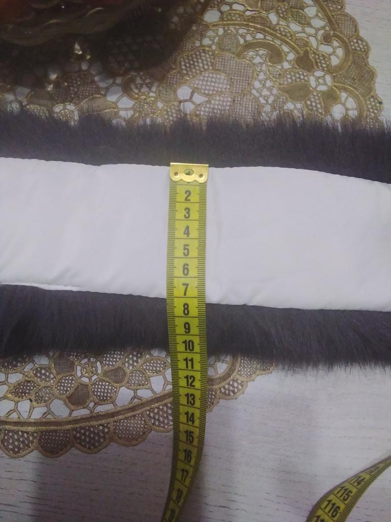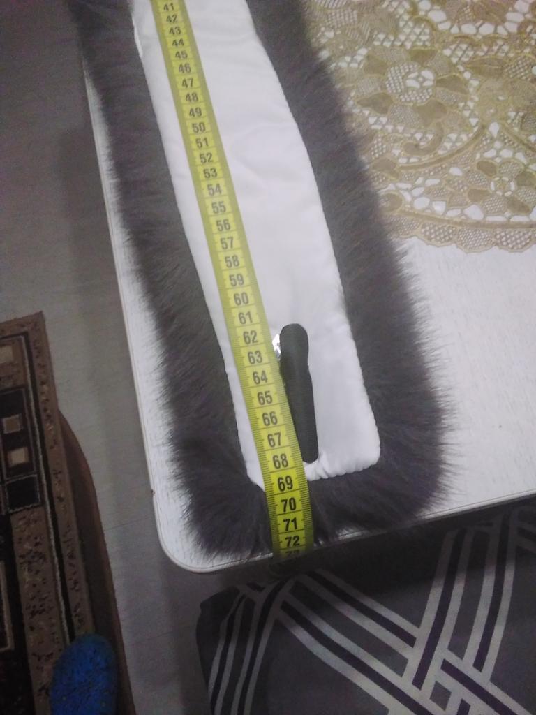 Очень понравился накладной воротничёк! Мех искусственный, пушистый,лёгкий, пришит зажим,чтоб воротничок держался на одежде. На фото продавца,воротник широкий, а прислали узенький ! Размер : 69см × 7 см. Пожалела,что не заказала 2 - 3шт можно было бы сшить шапку и опушки на рукава,побоялась, что пришлют некачественный товар,как мне прислали меховую куртку! Этот мех прекрасен,смотрится как настоящий! Рекомендую этого продавца ! Спасибо Джуму и продавцу за качество товара! А вот за размеры воротника, продавец обманул!,, заявлено : длина - средний размер, ширина-15 см У меня же : 69см на 7см. Так делать нельзя ! Я заплатила за товар по вашим размерам получила не соответствующий заявленному! На половину уже, а длина коротковатая,для воротника ,хотелось бы чуть подлинее. На фото продавца воротник доходит до груди,как и положено воротнику, а у меня только вокруг шеи.