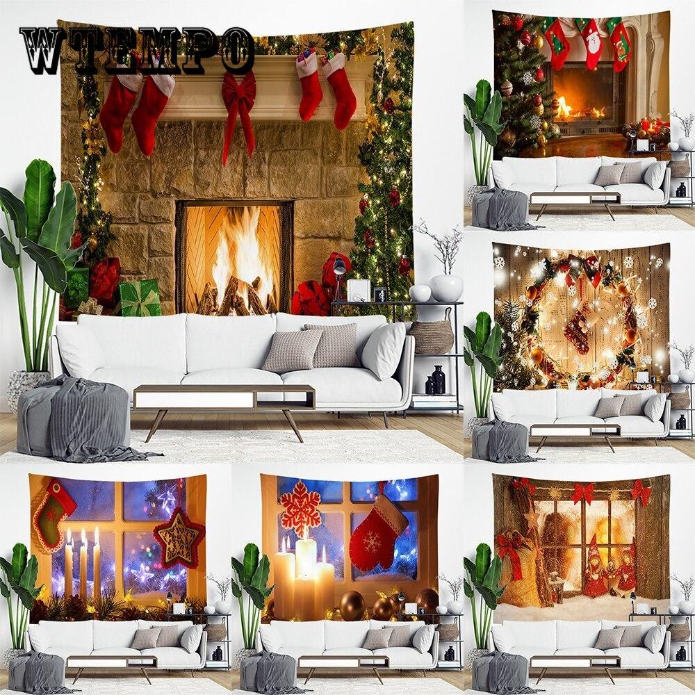 Рождественский гобелен Снежинки Санта-Клаус Зимняя ночь Подвесная ткань Одеяло для камина Подарки Рождественские настенные украшения для дома
