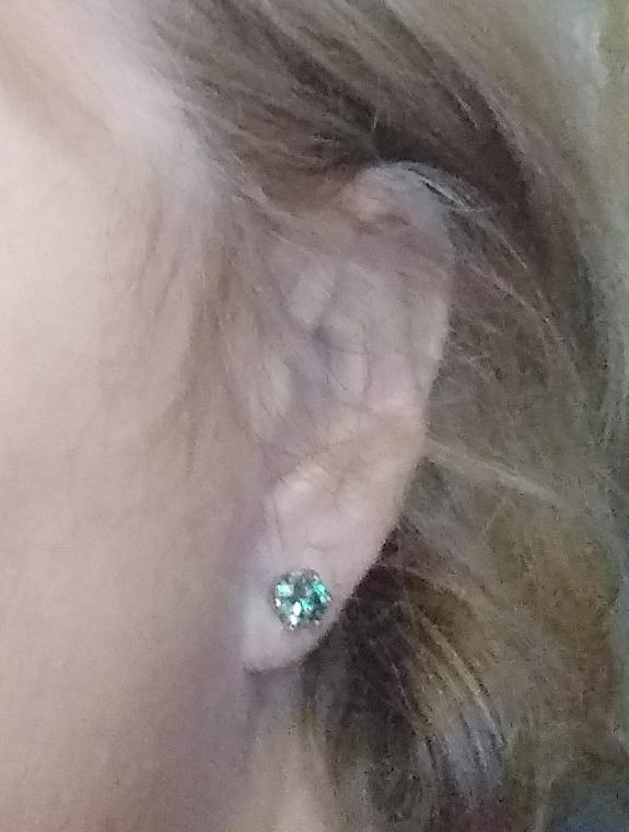 При попадании света камушки блестят , но не более чем обычные стекла, выглядят просто думаю из за обрамления камней, на 1200 совсем не выглядят, можно купить простые пуссеты за 200, эффект тот же.
