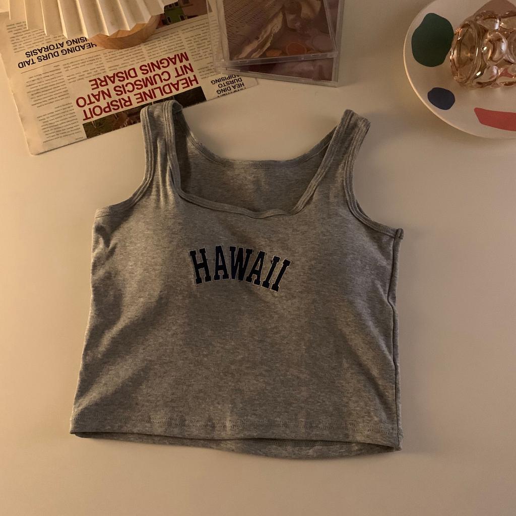 ITOOLIN Вязаные тонкие короткие топы на бретелях с подкладкой для бюстгальтера, женский жилет без рукавов с вышивкой букв, женский короткий базовый камзол