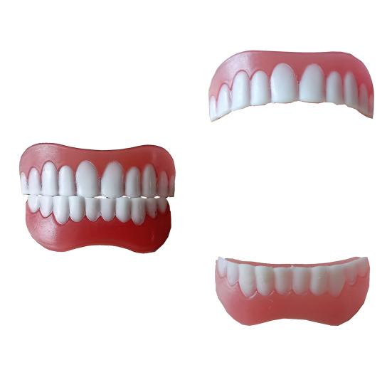 Этот временный зубной протез помогает скрыть сколы, пятна и трещины на зубах, позволяя вам уверенно улыбаться другим в любой ситуации.Вы можете легко приобрести инструмент для ухода за полостью рта, который имеет естественные цвета и формы, что делает его удобным в ношении и затрудняет определить, что вы носите протез при улыбке, с помощью этого временного зубного протеза.Искусственные зубы изготовлены из силиконового материала, который можно использовать в течение длительного времени.Длина верхних искусственных зубов составляет 6,6 см, а длина нижних искусственных зубов - 6 см.Он подходит для танцевального зала, вечеринки, свидания и дома.Детали размера: