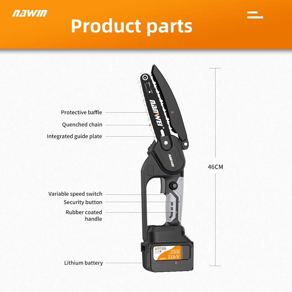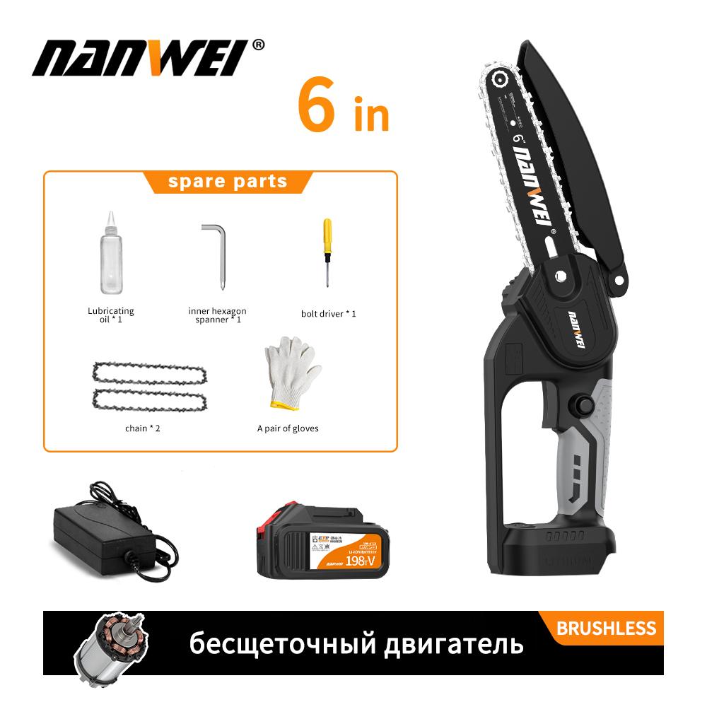 NANWEI 6-дюймовая бесщеточная электрическая цепная пила с портативной литиевой батареей для деревообработки
