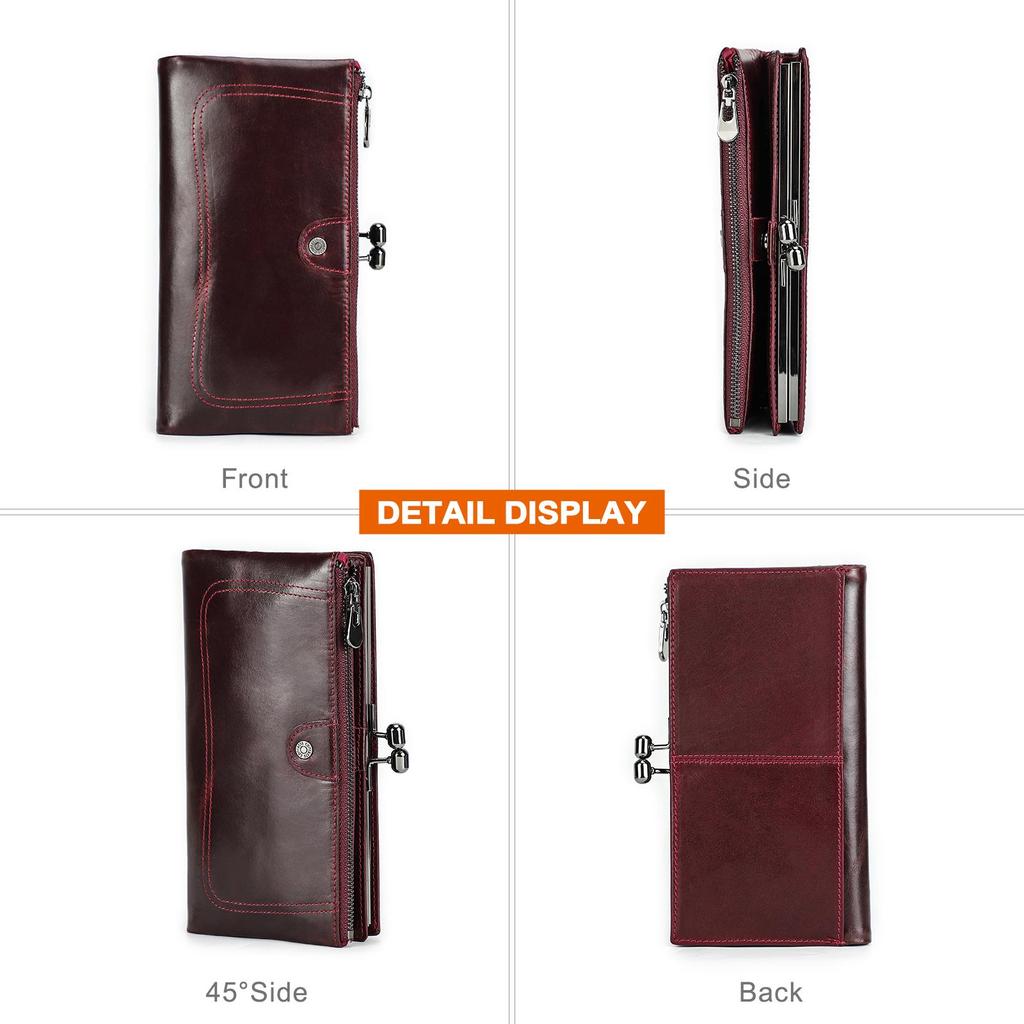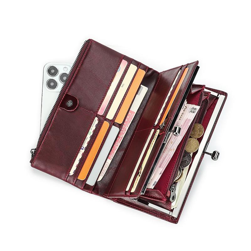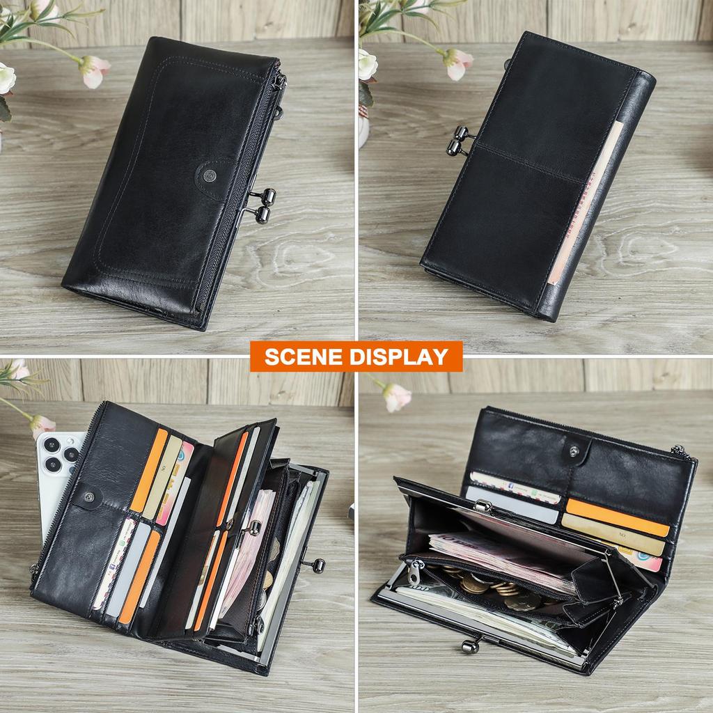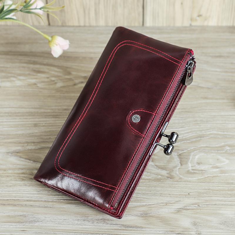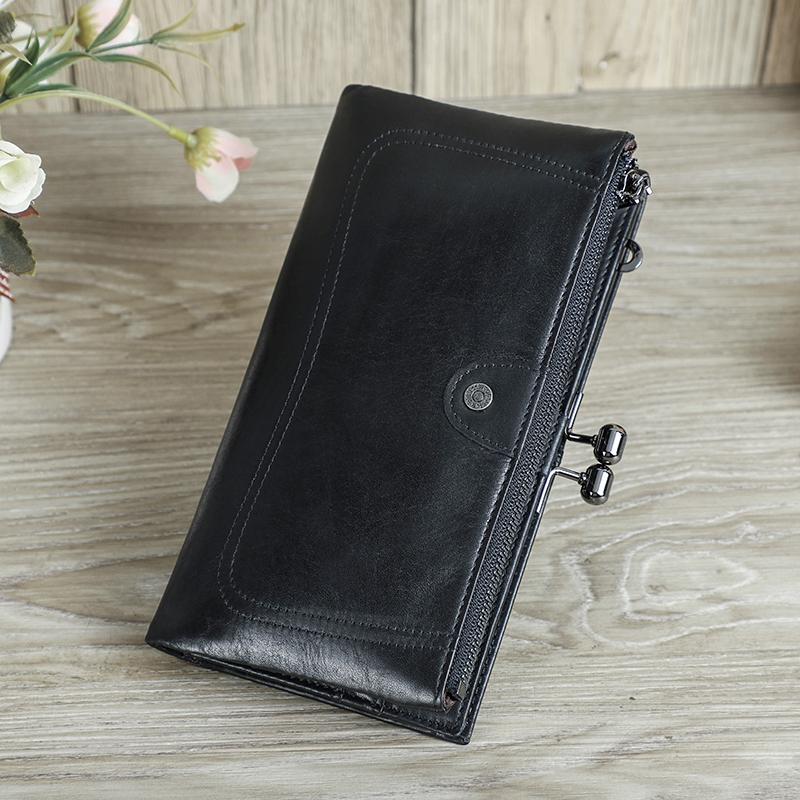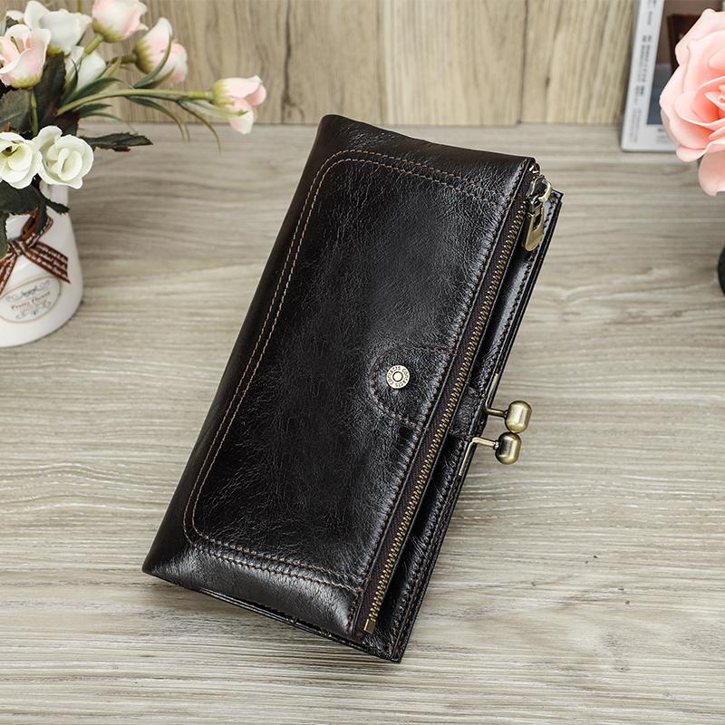 Женский длинный кошелек из натуральной кожи, металлический каркас, держатель для кредитных карт, застежка-молния, женский карман для монет, RFID-кошелек с 7-дюймовым карманом для телефона