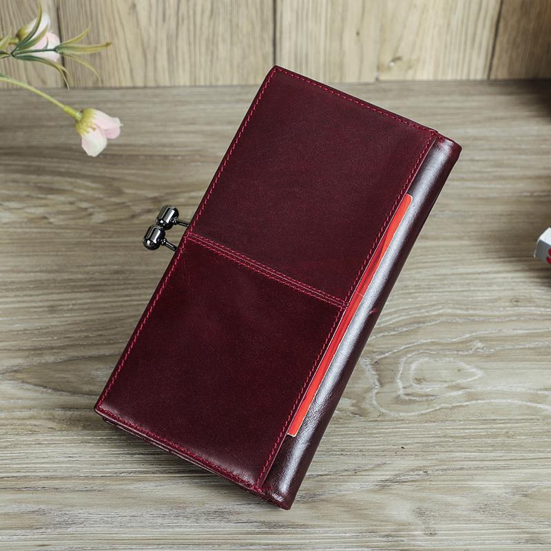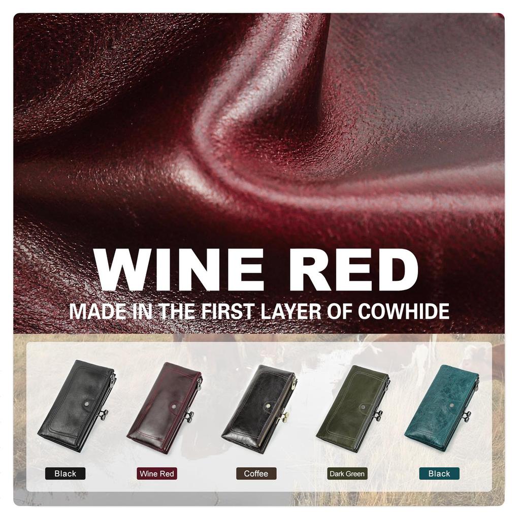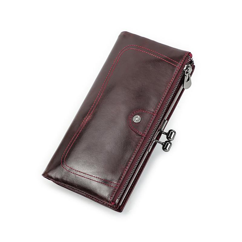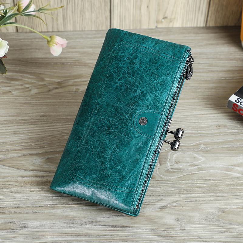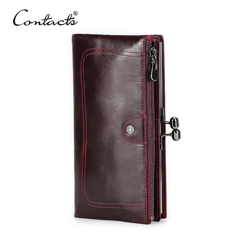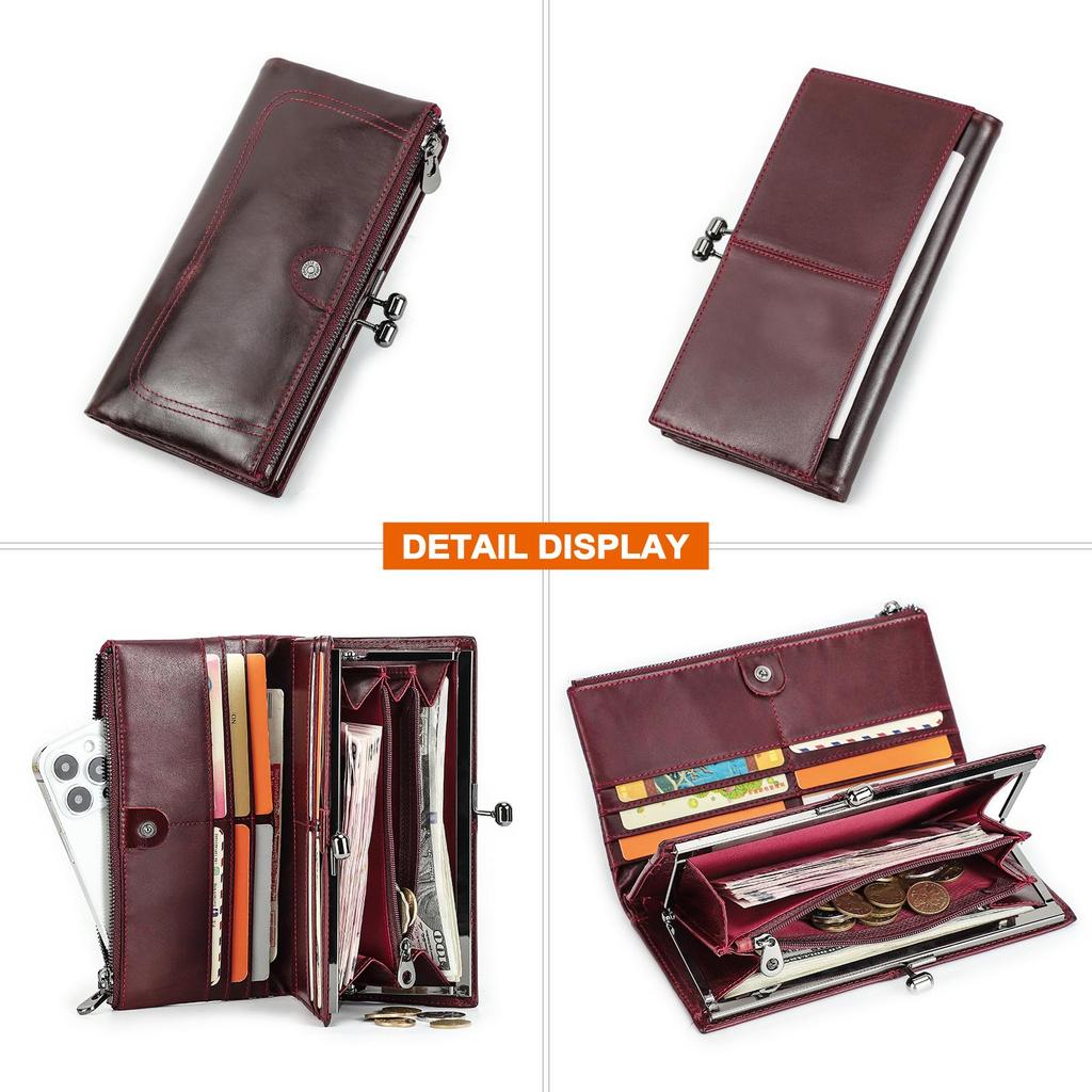 Женский длинный кошелек из натуральной кожи, металлический каркас, держатель для кредитных карт, застежка-молния, женский карман для монет, RFID-кошелек с 7-дюймовым карманом для телефона