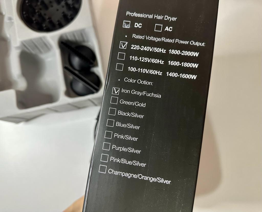 Отличный фен из магазина She Beauty & Hairdresser! ✈️Посылка шла месяц до Молдовы, Кишинёв. --с отрицательными ионами --3 настройки нагрева, 2 скорости и одна холодная настройка, кнопка Cool & Hot -- Мощный фен с двигателем переменного тока 1800-2000 Вт. -- Равномерное распределение тепла --Эргономично сбалансированная и тихая работа -- Сушит волосы равномерно и быстро --2,5 м профессиональный шнур -- Устройство защиты от перегрева - Он имеет складную конструкцию, удобен в переноске и моден. ❤️ Рекомендую однозначно к покупке ❤️