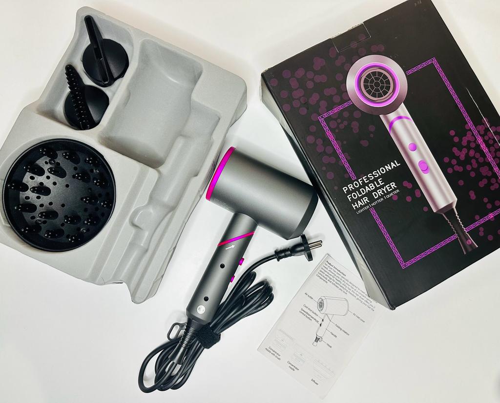 Складной фен для дома, электрический бесшумный фен для горячего/холодного воздуха, Blue-Ray, отрицательный ион, собирающий воздух, фен для волос