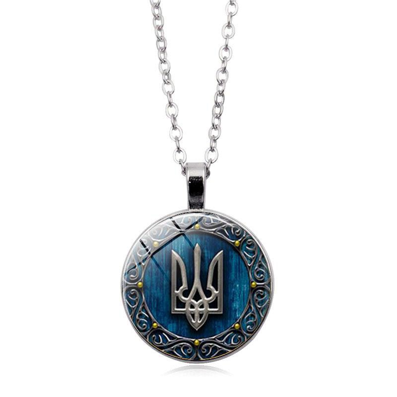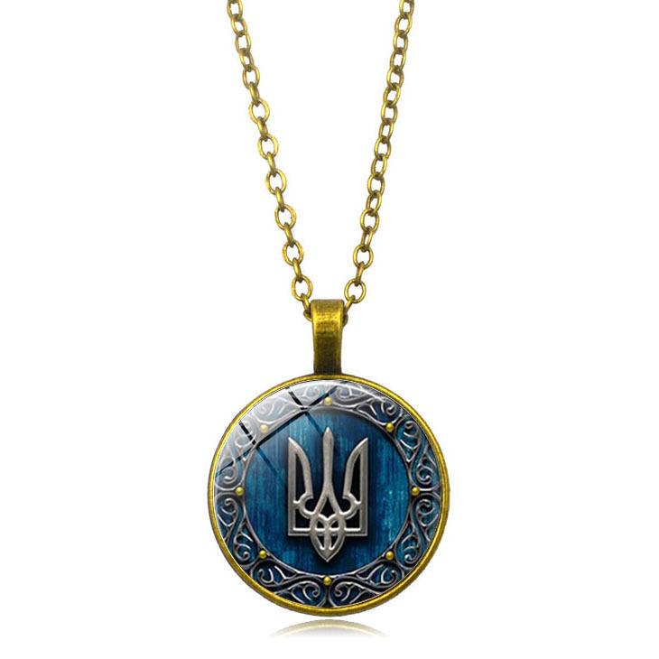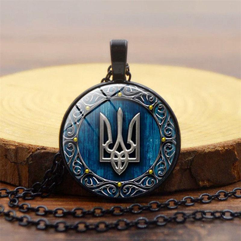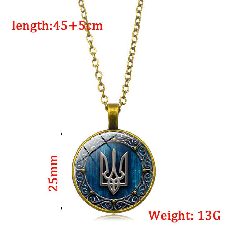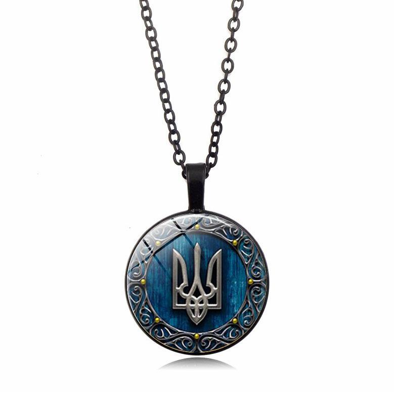 Ожерелье с подвеской Tryzub Ukraine, украинские руны, винтажные узоры, стеклянная цепочка с кабошоном, ожерелья для мужчин и женщин, классические ювелирные изделия