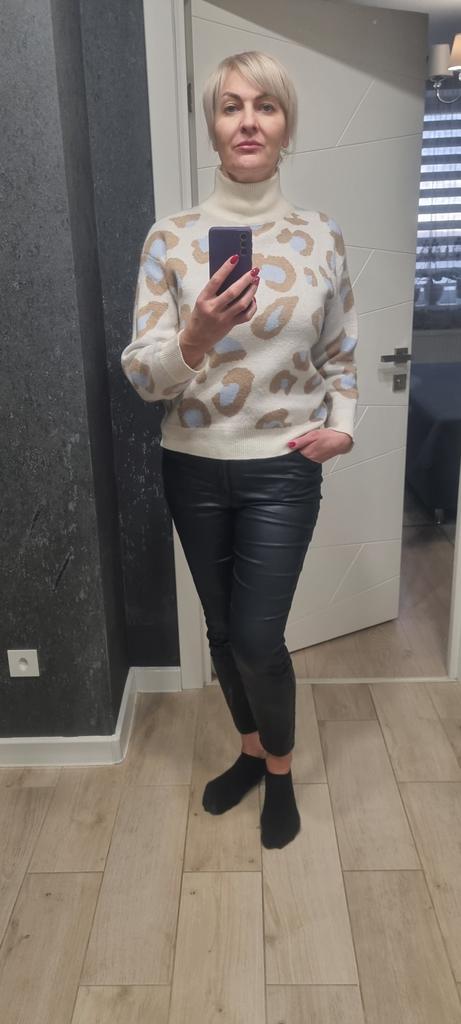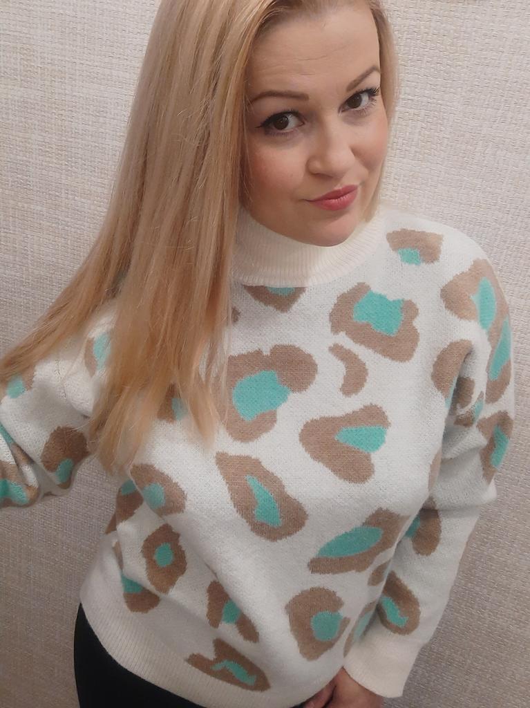 Уютный свитер с анималистичным принтом. Модель свободного кроя в стиле оверсайз, линия плеч спущена. Точные замеры в размере L: 📐ОГ 108 см, 📐длина рукава от плечевого шва 52 см, 📐длина свитера 61 см. 100% Polyester, сильно электризуется, нужно использовать антистатик.
