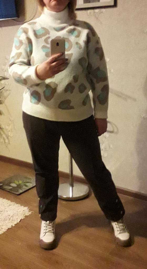 Свитер супер, можно брать на размер больше,качество отличное, мягкий и очень теплый,взяла Л, хотя ношу М, закажу ещё хл, для тех кто хочет свободнее .Не такой длинный как на фото, мой рост 1 75. Рекомендую