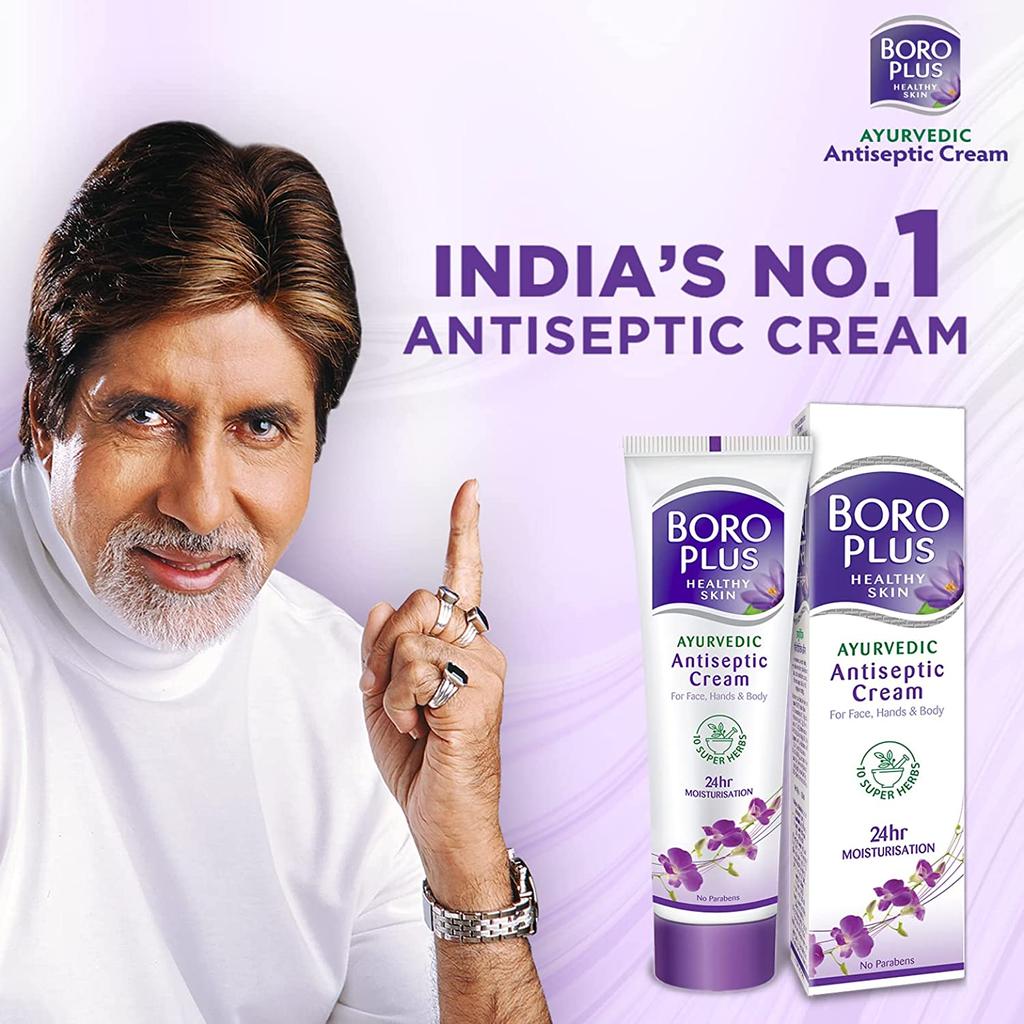 BoroPlus гордится тем, что является самым надежным поставщиком в Индии.. 1 антисептический крем. BoroPlus действует как многоцелевой крем, сочетающий в себе преимущества антисептического крема, зимнего крема, увлажняющего крема, ночного крема, крема для восстановления пяток и бальзама для губ — все в одном креме.. Аюрведическая формула состоит из смеси 10 супер-трав, таких как алоэ вера, ним, тулси и чандан, которые работают вместе, чтобы не только сделать вашу кожу более мягкой, гладкой, хорошо увлажненной и глубоко напитанной, но и их антибактериальные, антисептические свойства. -грибковые и противовоспалительные свойства помогают вашей коже бороться с различными инфекциями, прыщами, пятнами, шрамами и морщинами. Это крем, который может использоваться мужчинами и женщинами и подходит для всех типов кожи.. Его даже можно использовать в качестве увлажняющего крема после бритья, средства от потрескавшихся пяток, в качестве раствора для ухода за потрескавшимися губами, а также при порезах, царапинах, незначительных ранах и ожогах.