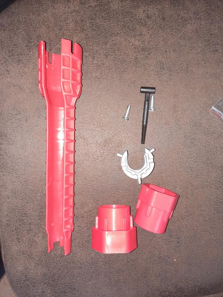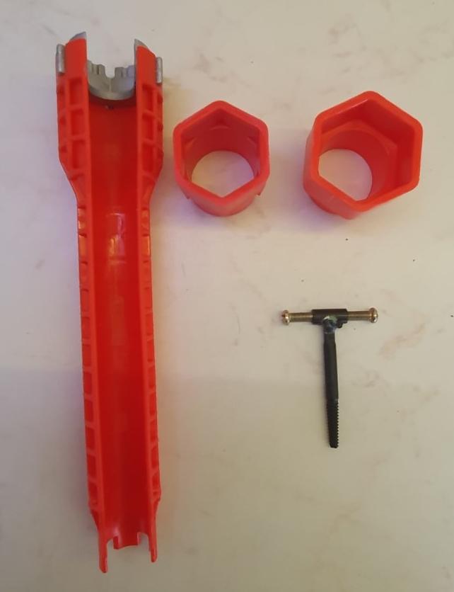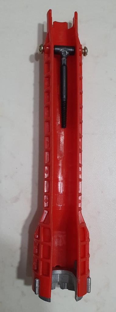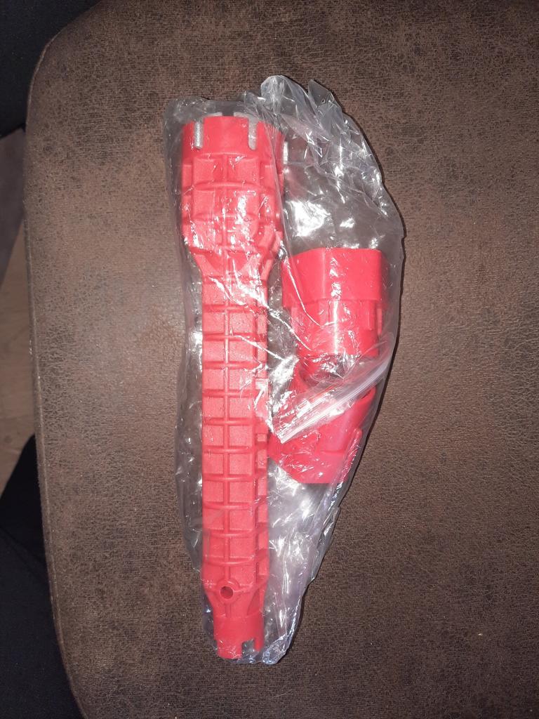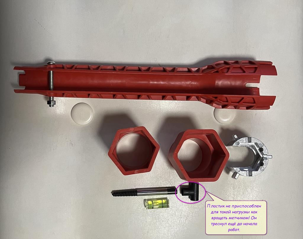 В некоторых местах сантехнику действительно сложно закрутить из-за ограниченного доступа к месту закрутки. Ключ для таких случаев и предназначен. А то, бывает, работы на 10 минут, а подлезть не с чем! Столько времени угробишь, чтобы хоть что-то придумать или извернуться как-то. А ключ реально может помочь теперь! Не все возможности и приспособления ключа будут востребованы, но, практика показывает, ситуации со временем возникают разные, и рано или поздно какие-то приспособления ключа станут востребованными! Правда пришёл ко мне экземпляр модифицированный (лучше бы его не модифицировали!): Т-образный держатель метчика стали делать из пластика, а не из металла, как показано на рекламных фотках. Этот пластик даже ещё не будучи в работе оказался треснутым (то ли пришёл таким, то ли треснул, пока я пытался его закрепить в ручке), но это уже не важно, по какой причине он треснул. Его материал оказался несоответствующим его рекламному изображению, т.к. на картинке видно, что он должен был быть изготовлен из метелла (сварка видна на Т-образном стыке). А дело в том, что держатель метчика несёт на себе большую нагрузку, и пластик никак на это не рассчитан, поэтому изготавливать его следует только из метелла! Но в моих условиях я даже и не знаю, зачем метчик нужен да ещё с обратной резьбой, поэтому оставляю вопрос без внимания.