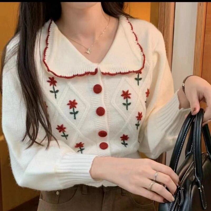 Осенний кардиган, свитер, мягкий восковой кукольный вырез, уникальный дизайн верхнего пальто, свитер с вышивкой меньшинства, вязаный кардиган, женский